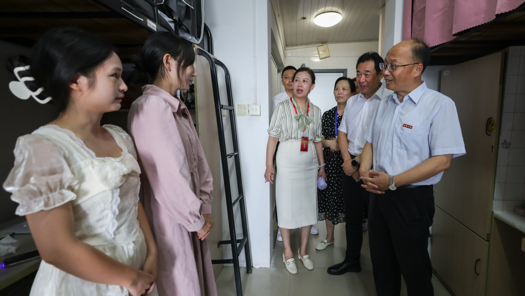 在beat365唯一官方网站智能治理一体化平台运维中心,校领导通过2024年迎新数据大屏实时了解新生报到情况,察看各校区大门及校内道路交通情况、报到点现场实况。在各校区迎新报到点,校领导详细了解了新生报到各环节工作流程,与迎新工作人员、大学生志愿者亲切交流,对他们的周全准备和细心服务表示肯定。在启东校区,尚庆飞一行实地察看了改造后的新生宿舍楼、舞蹈房等场地,强调要全面做好统筹协调和服务保障,努力营造让家长放心、让师生满意的生活、学习和工作环境,各学院要尽快熟悉学生,平稳顺利地做好新生入学工作。