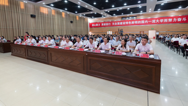 尚庆飞强调,教师是办好人民满意大学的关键要素,也是实现高质量发展的核心支撑。他向学校广大教职工提出三点要求。一是坚定理想信念,当好学生成长的“引路人”。要把牢政治方向,坚守育人初心,筑牢职业底线,自觉用“四个意识”导航、用“四个自信”强基、用“两个维护”铸魂,以“四有”好老师标准严格要求自己。二是弘扬教育家精神,争做潜心育人的“大先生”。要勤修为师之德,锤炼为师之才,恪尽为师之责,坚持以德立身、以德立学、以德施教,涵养终身学习的习惯,练就扎实学识之功,做“经师”和“人师”的统一者。三是强化使命担当,勇当改革创新的“实干家”。要增强改革的决心定力,拿出破题的实招硬招,全面融入学校高质量发展大局,围绕问题,对标找差,大胆探索,自我加压,敢于啃硬骨头,敢于涉险滩。学校将营造干事的良好氛围,一如既往地把人才工作放在极端重要的位置,始终坚持“尊师重才”的发展方略,秉承“以师生为中心”的发展理念,让大家工作有条件、干事有平台、待遇有保障、发展有空间。他希望大家以对党和人民教育事业的高度忠诚,坚定扛起强国强校的使命担当,大力弘扬教育家精神,争作新时代大国良师,加快建设特色鲜明的国内一流大学,为强国建设和民族复兴伟业作出新的更大贡献。