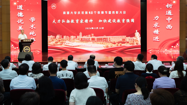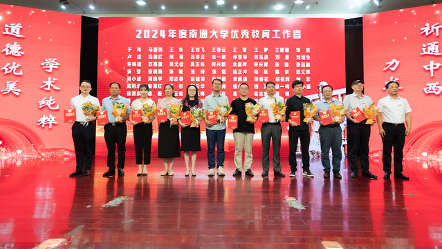 9月10日,beat365官网举行庆祝第40个教师节表彰大会,表彰第五届江苏省高校青年教师教学竞赛获奖者和beat365官网2024年教学名师、优秀教育工作者,并为从教30周年教职工颁发荣誉证书。校党委书记尚庆飞在大会上讲话。校党委副书记、校长杨宇民主持大会。在通校领导、党委常委出席大会。