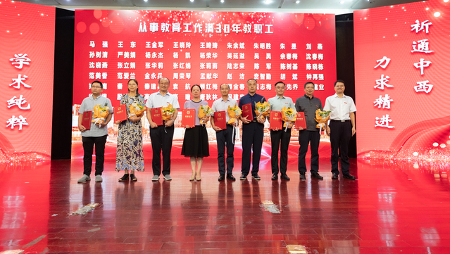 尚庆飞代表学校向受到表彰的各位教师表示热烈祝贺,向从事教育工作满30年的教职工致以崇高敬意,向全校广大教职工和离退休老教师、老同志致以诚挚慰问。他指出,校第四次党代会以来,全校上下坚定“通大自信”,集聚“通大智慧”,加快推动“名城名校”融合发展战略协议落地,着力破解事业发展中存在的结构性难题,学校事业高质量发展呈现出蒸蒸日上的良好态势。他说,这一切,都要归功于广大教师坚守立德树人初心,为学生的成长成才倾注热情、扛起责任;要归功于广大教师忠诚于党的教育事业,在平凡的岗位上履职尽责、无私奉献;要归功于广大教师牢记通大人的历史使命,在投身学校改革发展中勇立潮头,奋力拼搏。正是有了这样一支优秀的师资队伍,才培养出一批又一批德智体美劳全面发展的优秀人才,推动学校各项事业实现了一次又一次的新突破。