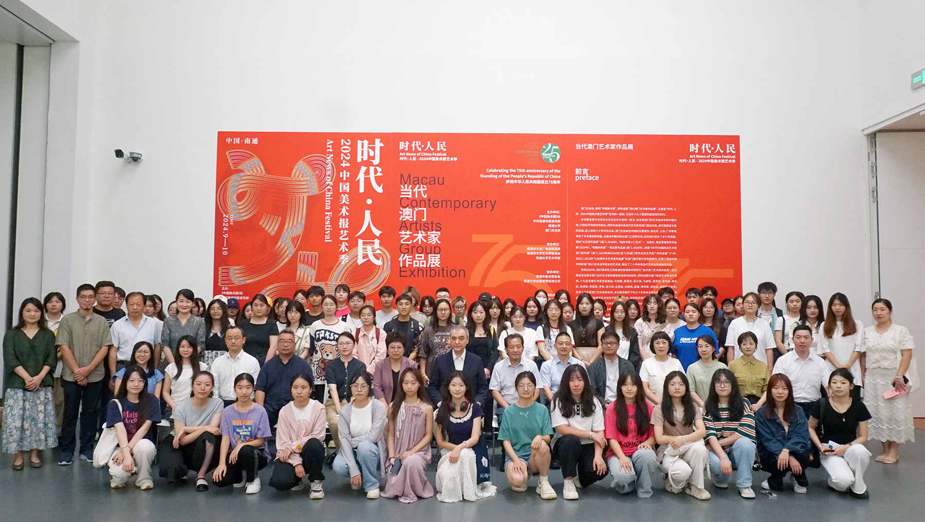 艺术学院院长张卫主持开幕式。澳门文化体、中共南通市委宣传部、南通市人民政府港澳事务办公室、南通市文联、南通市文化广电和旅游局、南通文旅集团、南通文体会展管理有限公司、南通文化艺术中心管理有限公司相关负责人,以及澳门参展艺术家、南通艺术界艺术爱好者、beat365官网艺术学院师生代表500余人参加开幕式。