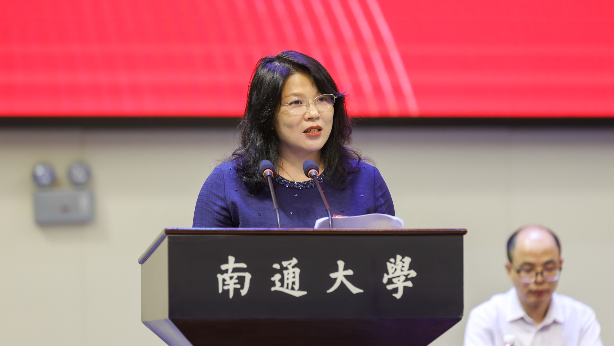 电气与自动化学院徐一鸣教授、教育科学学院濮海慧教授分别作为教师代表发言。徐一鸣叮嘱同学们要时刻明白“为学须先立志,立志务明目标”“勤学乃为学之本,善学乃为学之道”“读书破万卷,学以致用是根本”的道理,在大学校园里塑造品格、学习知识、强健体格、锤炼意志、锻炼能力、提升素养。濮海慧勉励大家励志奋斗启新程,志存高远,做一个有高度的通大人;开阔眼界,做一个有厚度的通大人;心怀感恩,做一个有温度的通大人,共同谱写属于通大人的华美篇章。