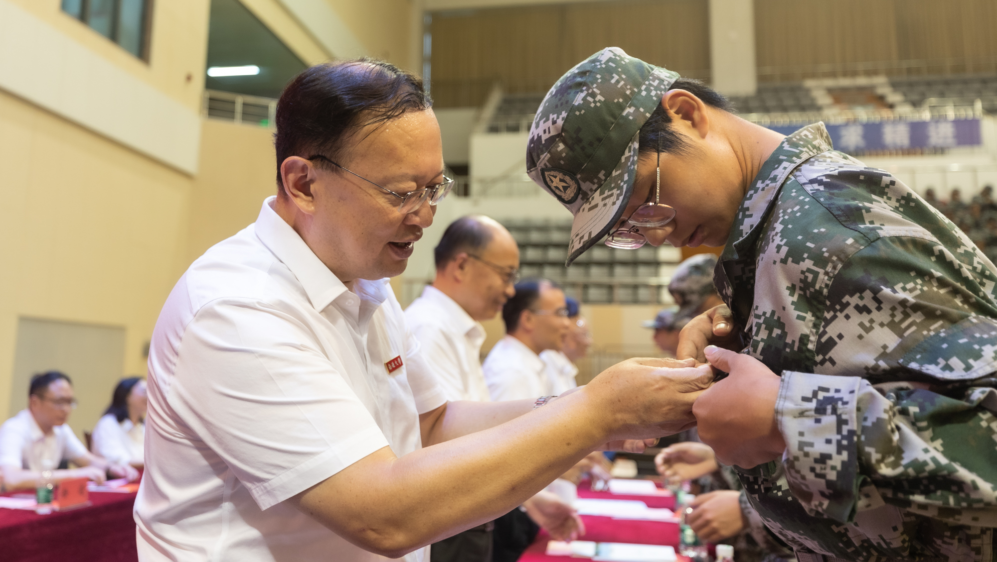 校领导为研究生新生佩戴校徽