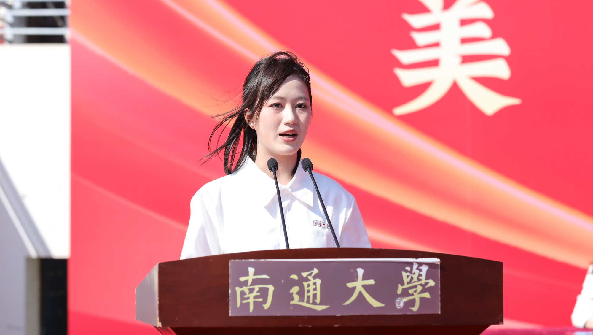 特种医学研究院特种医学专业24级博士研究生叶莉莎、纺织服装学院服装设计与工程242班夏星星、历史文化学院(法学院)历史师范242班方文俊分别作为新生代表发言。叶莉莎呼吁同学们承载通大百年精神,践行家国情怀;紧跟时代步伐,勇立科研潮头;肩负历史使命,奋进光明未来。夏星星分享了她在十年前与通大结缘的故事,表示将承百年风华,勇担时代之责;以青春理想,不负民族之望;用行而不辍,勤筑梦想之巅。方文俊呼吁大家铭记“祈通中西,力求精进”校训,明白“千淘万漉虽辛苦,吹尽黄沙始到金”,做到“笃行致知,明德崇法”,切忌“白了少年头,空悲切”。