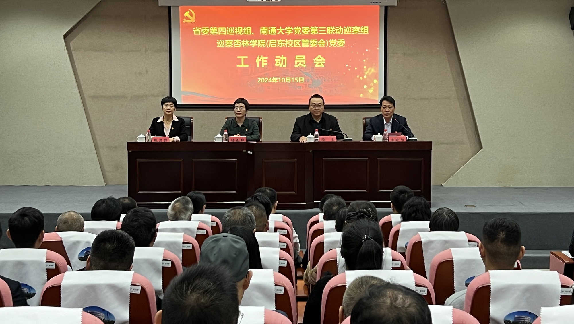 省委第四巡视组副处职巡视专员陆正艳,党委第三联动巡察组副组长、交通与土木工程学院党委书记张莉莉及有关同志,杏林学院(启东校区管委会)党委领导班子成员出席会议;学院顾问、各学部负责人、全体行政人员、教师代表列席会议。