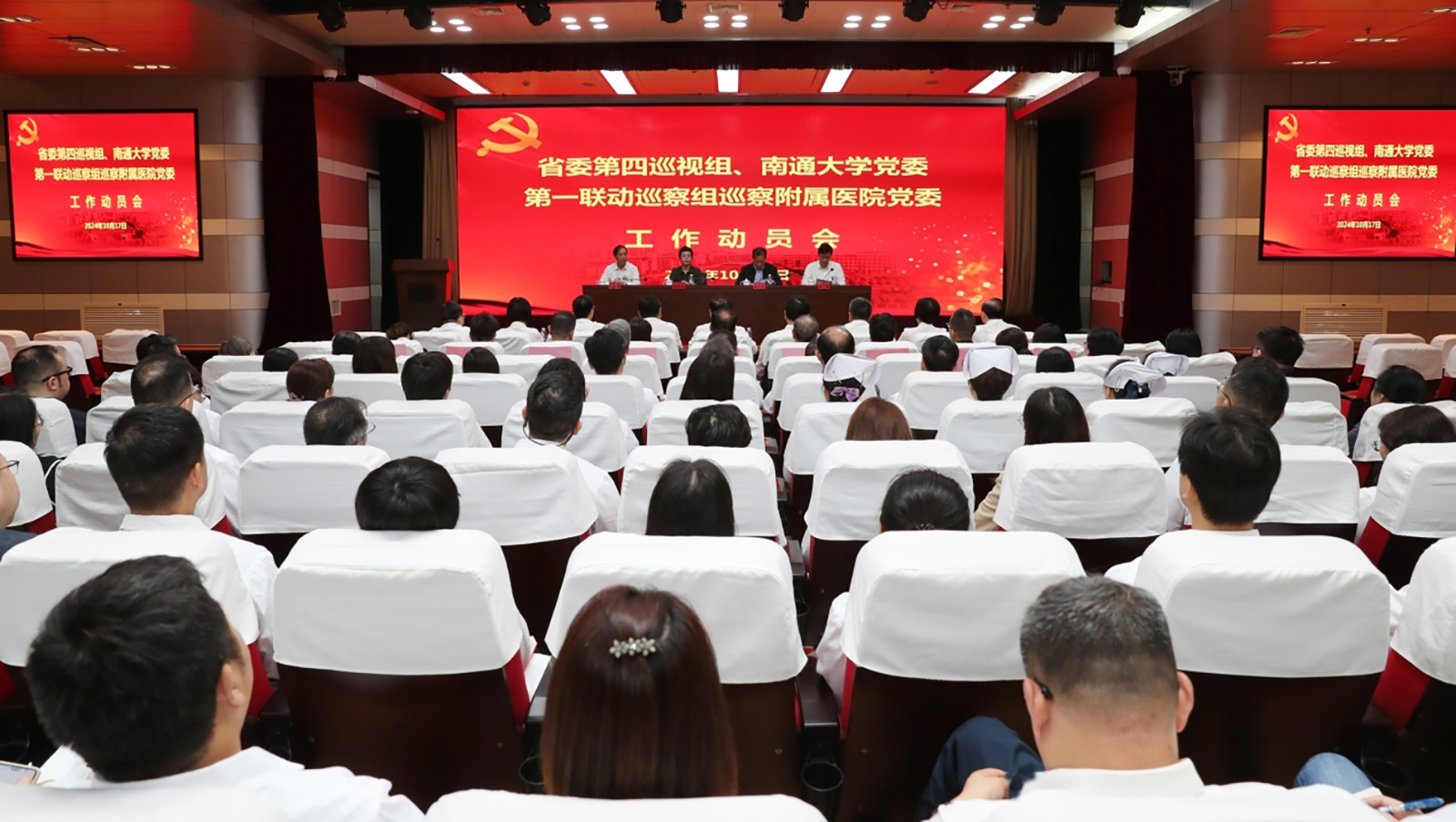 省委第四巡视组副处职巡视专员陆正艳,党委第一联动巡察组副组长王金辉及有关同志,附属医院全体院领导出席会议;近三年退出领导岗位的院领导,各党总支(党工委)、党支部书记、副书记,职能部门正、副职干部,直属(附属)、科研机构正、副职干部,各临床、医技科室主任和科护士长等列席会议。