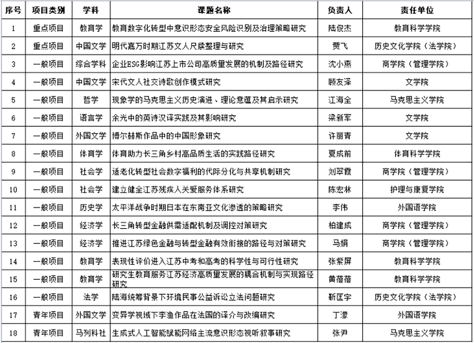 从立项类别上看,实现了重点、一般和青年项目全覆盖;从学院分布上看,商学院(管理学院)获得4项,文学院、教育科学学院各获得3项,马克思主义学院、外国语学院、历史文化学院(法学院)各获得2项,体育科学学院、护理与康复学院各获得1项,实现了较好的立项覆盖面,呈现出学院联动、多点齐发、学科交叉的良好态势和繁荣景象。