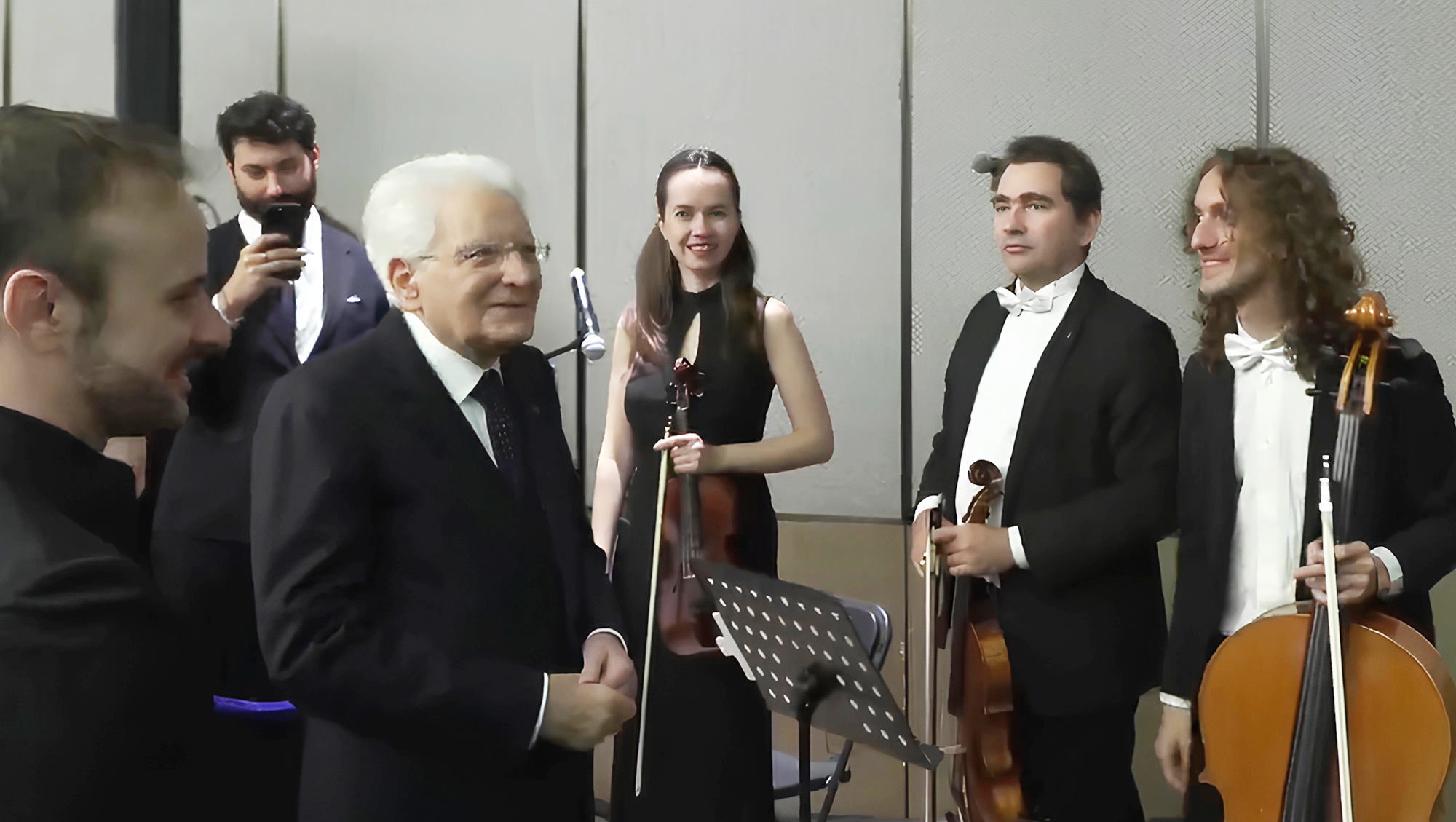 塞尔焦·马塔雷拉在观演后对beat365官网国际交响乐团表示高度认可,肯定了乐团用音符表达旋律、表达艺术的专业水准,赞扬乐团用音乐传递美好、传递友谊的艺术境界。演出结束后,塞尔焦·马塔雷拉与乐团的艺术家们一一握手并亲切交流,勉励他们做好高等教育工作,做好中意友谊使者,为中意双方培养越来越多的高素质国际化艺术人才,为两国人文交流作出越来越大的贡献。