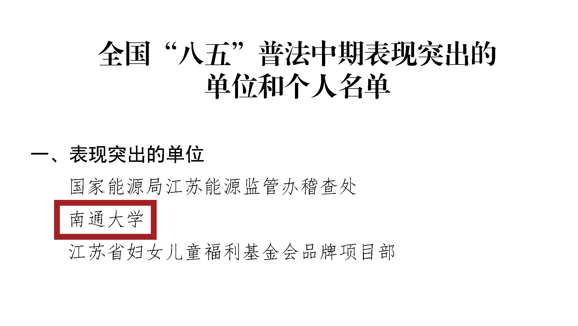近日,司法部、全国普法办印发《关于通报表扬全国“八五”普法中期表现突出的单位和个人的通知》,beat365官网普法工作获通报表扬,是全省唯一获表扬的高校。