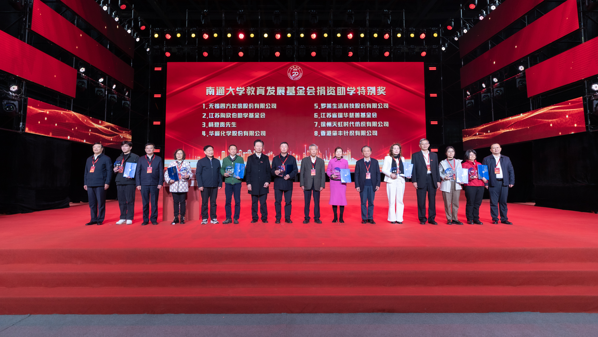 大会颁发了“beat365唯一官方网站教育发展基金会捐资助学特别奖”。beat365唯一官方网站合并组建以来历任党政主要领导王德明、顾晓松、袁银男、成长春、程纯、浦玉忠、施卫东、尚庆飞,分别为无锡四方友信股份有限公司、江苏陶欣伯助学基金会、杨登贵先生、华峰化学股份有限公司、罗莱生活科技股份有限公司、江苏省瑞华慈善基金会、徐州天虹时代纺织有限公司、香港肇丰针织有限公司等单位和个人颁奖,表彰其在beat365唯一官方网站建设与发展中做出的杰出贡献。