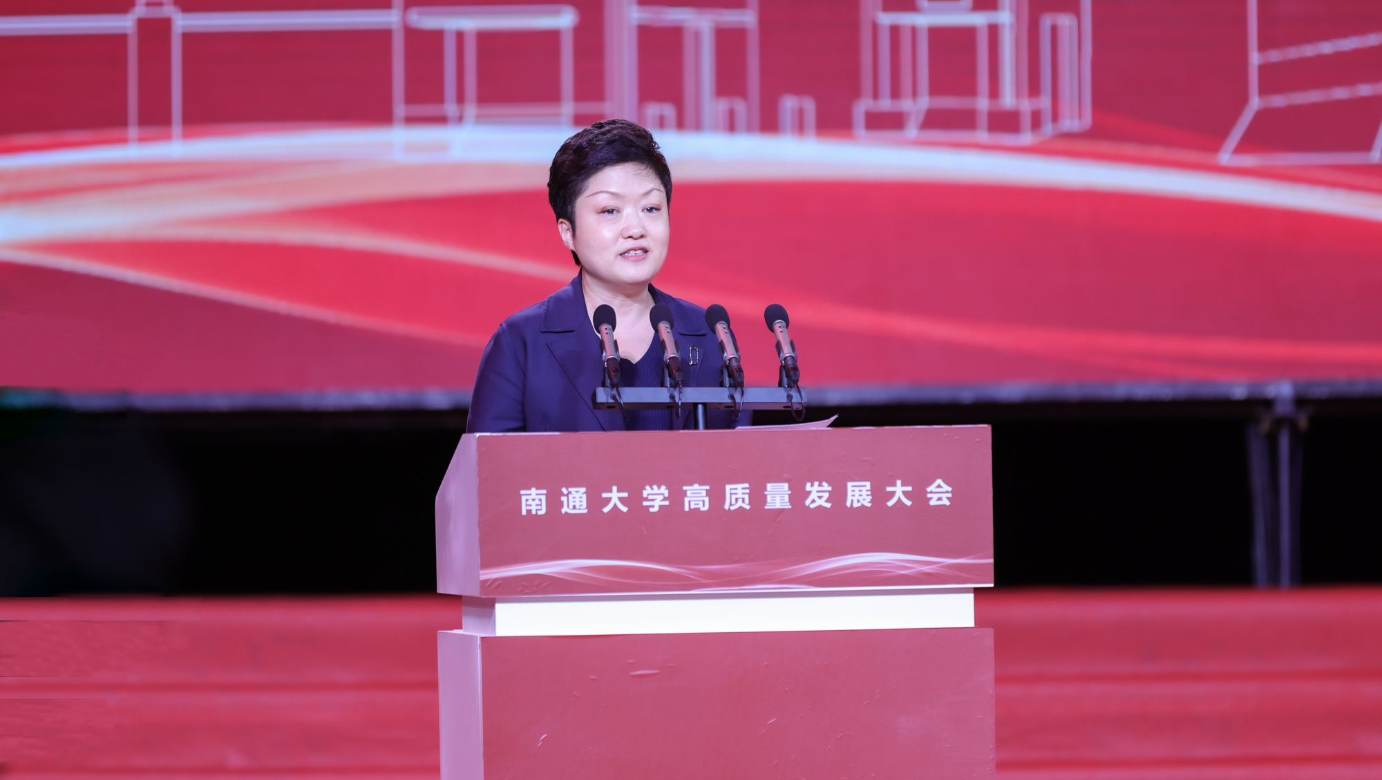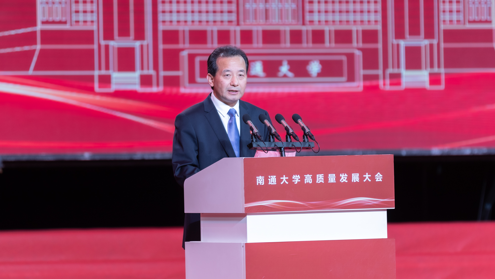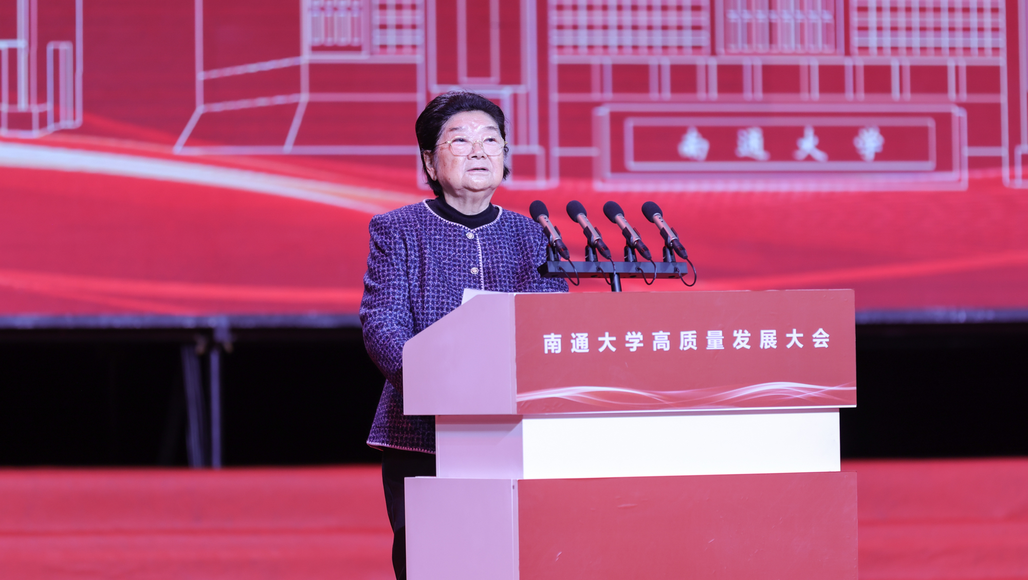顾秀莲向beat365官网全体师生员工和海内外校友致以热烈的祝贺和诚挚的问候。她指出,2004年,原南通医学院、南通工学院、南通师范学院合并组建beat365唯一官方网站,圆了南通人民的百年大学梦,在学校发展历程中具有里程碑意义。20年来,学校全面贯彻党的教育方针,狠抓内涵建设,注重特色发展,各项事业取得长足进步,走出了一条扎根江海大地建设高水平大学的发展道路。她祝愿beat365唯一官方网站越办越好,站在新的历史起点上,希望学校坚持以习近平新时代中国特色社会主义思想为指导,深入学习贯彻习近平总书记关于教育的重要论述,坚持社会主义办学方向,落实立德树人根本任务,全面提高人才培养质量,大力弘扬优良传统,担当时代使命,抢抓发展机遇,早日建成特色鲜明的国内一流大学,为建设教育强国、以中国式现代化推进强国建设、民族复兴伟业作出新的更大贡献。她勉励学校广大教师牢记初心使命,大力弘扬教育家精神,树立“躬耕教坛、强国有我”的志向和抱负,自信自强、踔厉奋发,做党和人民满意的新时代“四有”好老师,希望同学们牢记习近平总书记殷切嘱托,怀抱梦想、脚踏实地,在学习和实践中练就过硬本领,立报国强国大志向、做挺膺担当奋斗者,在青春的赛道上跑出更好成绩。