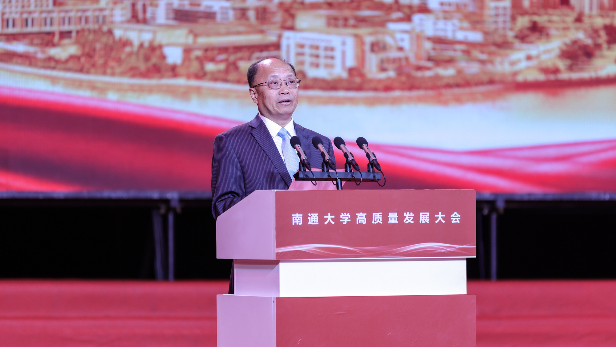 风雨砥砺,岁月如歌。20年前,原南通医学院、南通工学院和南通师范学院“三水汇流”,新的beat365唯一官方网站应运而生。11月28日,beat365官网迎来合并组建20周年,校园里道旗招展,洋溢着欢庆的气氛。beat365唯一官方网站合并组建20周年高质量发展大会在啬园校区体育馆隆重举行。全校师生员工、海内外校友和关心学校发展的各界人士线下线上相聚,回顾beat365唯一官方网站的办学历程,传承弘扬张謇爱国主义思想和教育理念,总结凝练办学经验和优良传统,提振发展信心,共商发展大计,推动学校事业高质量发展。