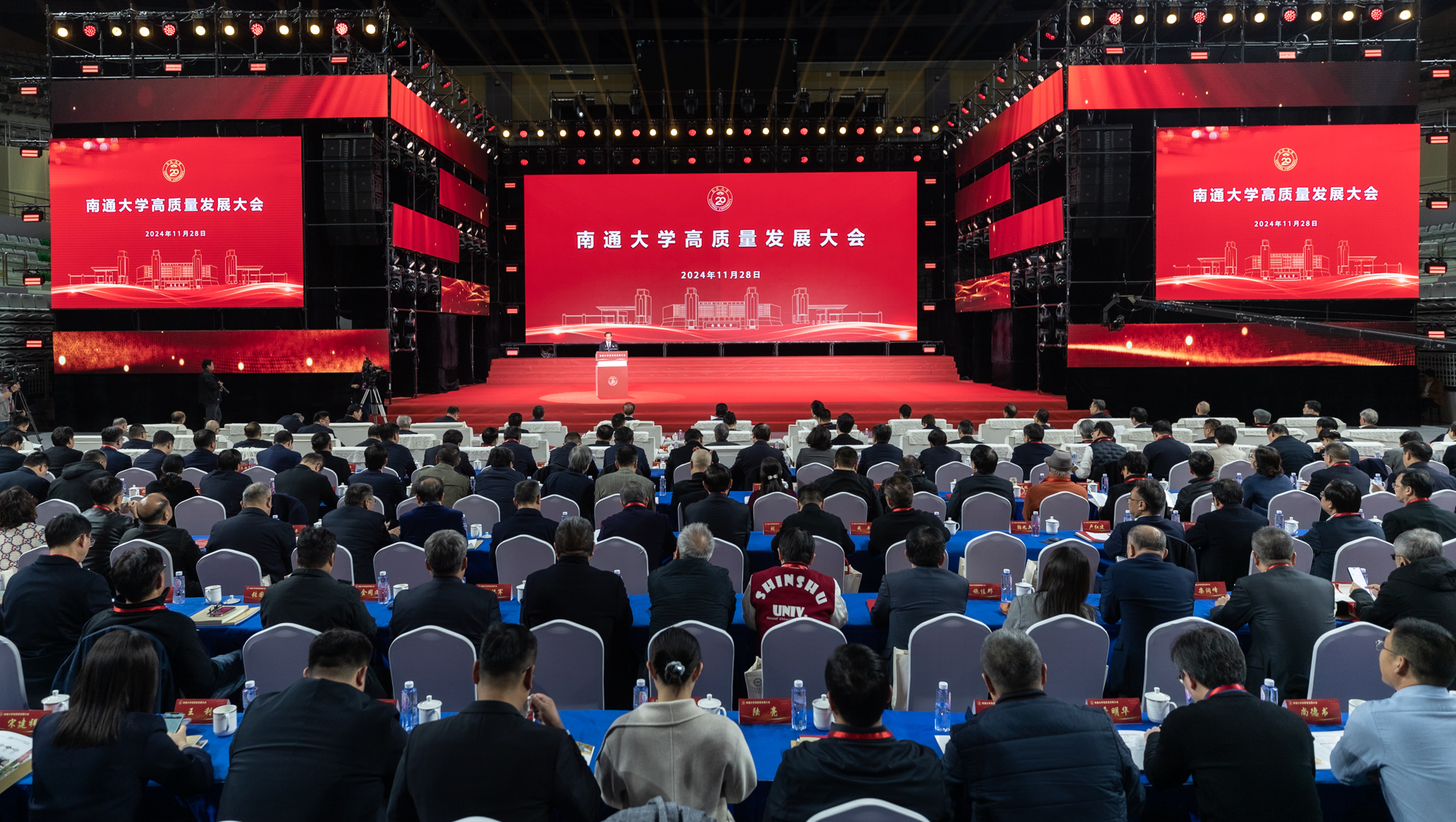 省有关部门的领导同志,南通市有关部门和各县市区的领导同志,各地校友代表,兄弟院校及海外友好学校领导,学校全体处级干部、师生代表参加大会。大会通过beat365唯一官方网站官方微信视频号、江海南通视频号等平台同步直播。