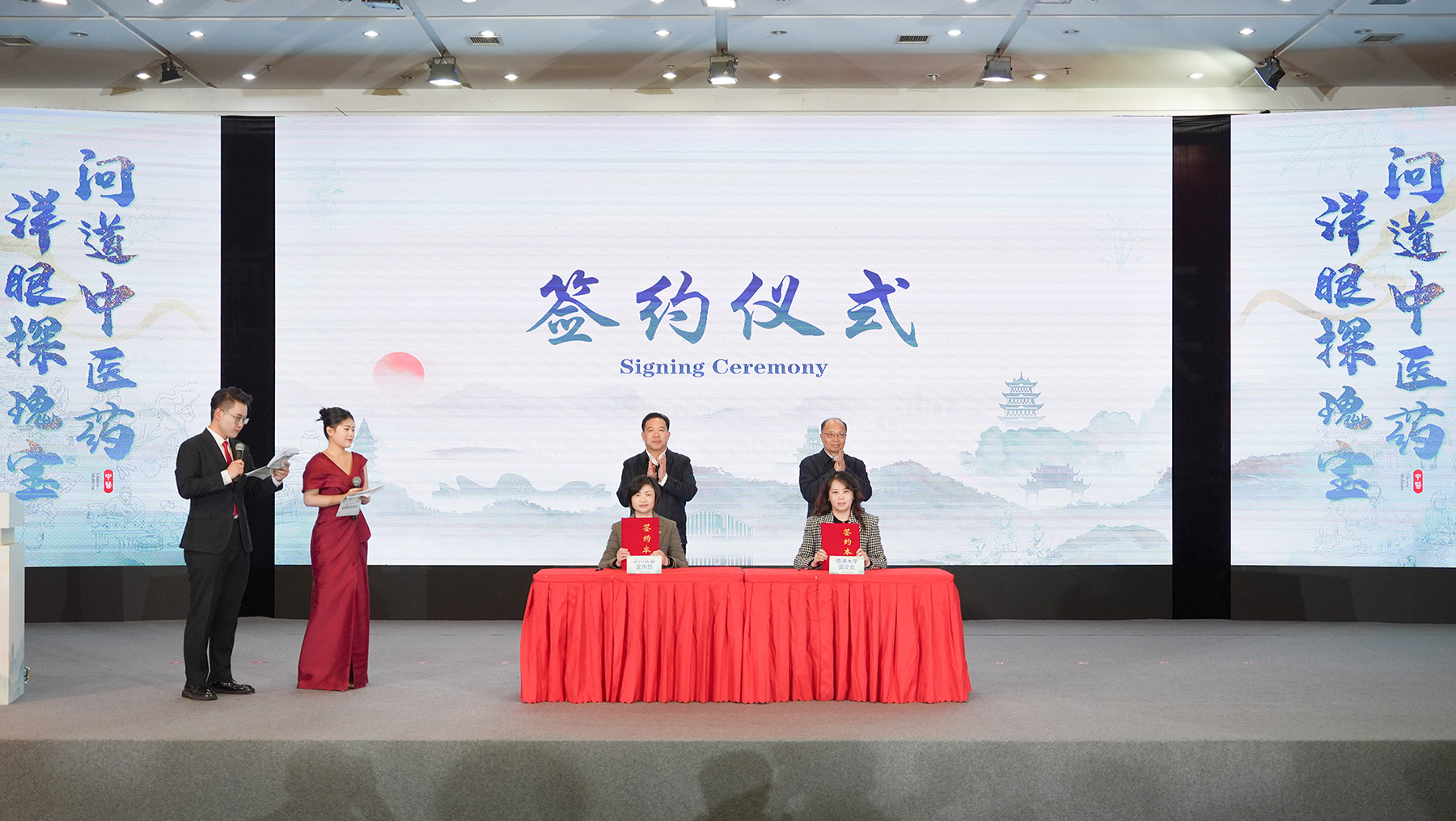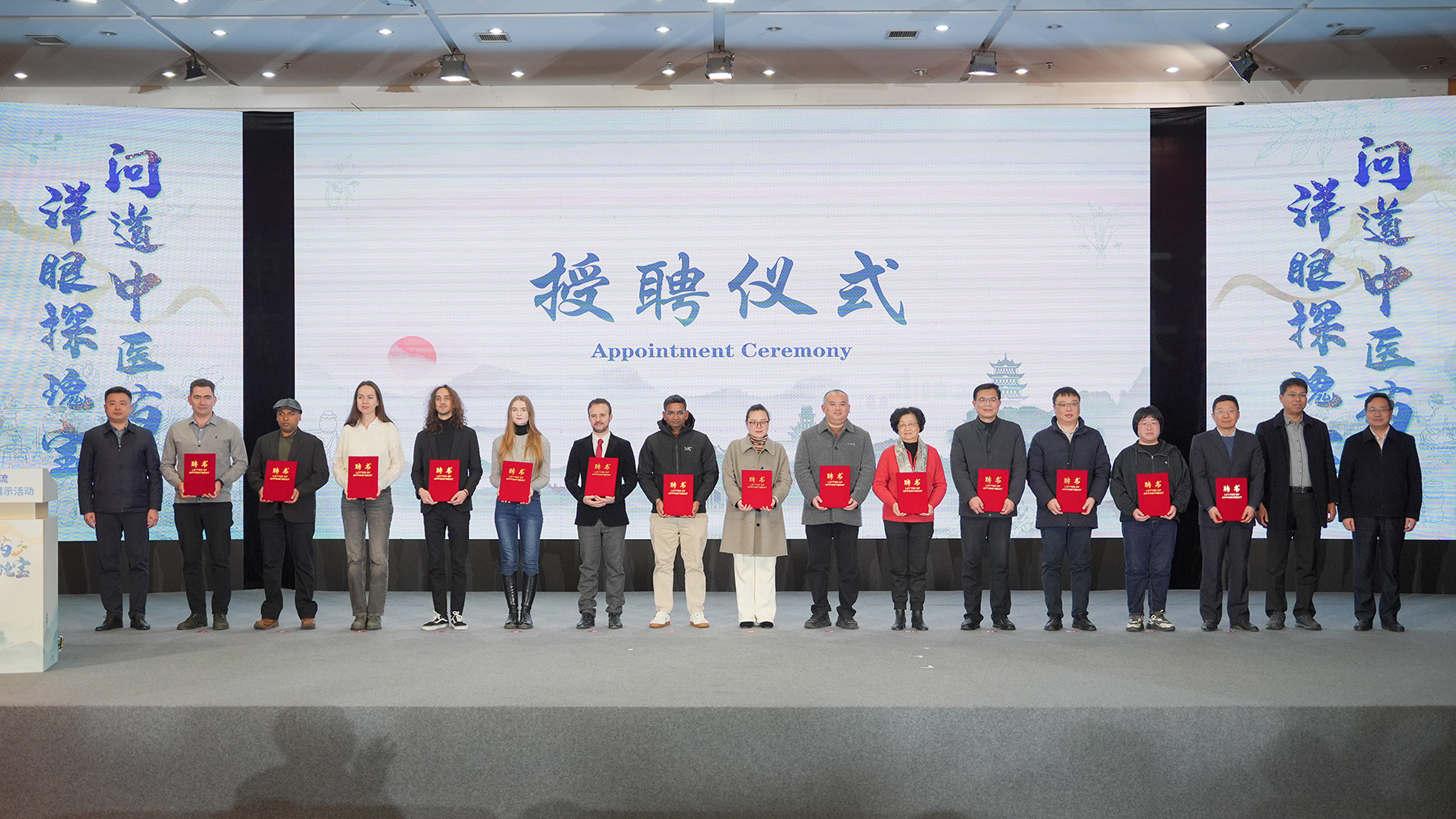 与会领导为“中医药文化交流使者”颁发聘书