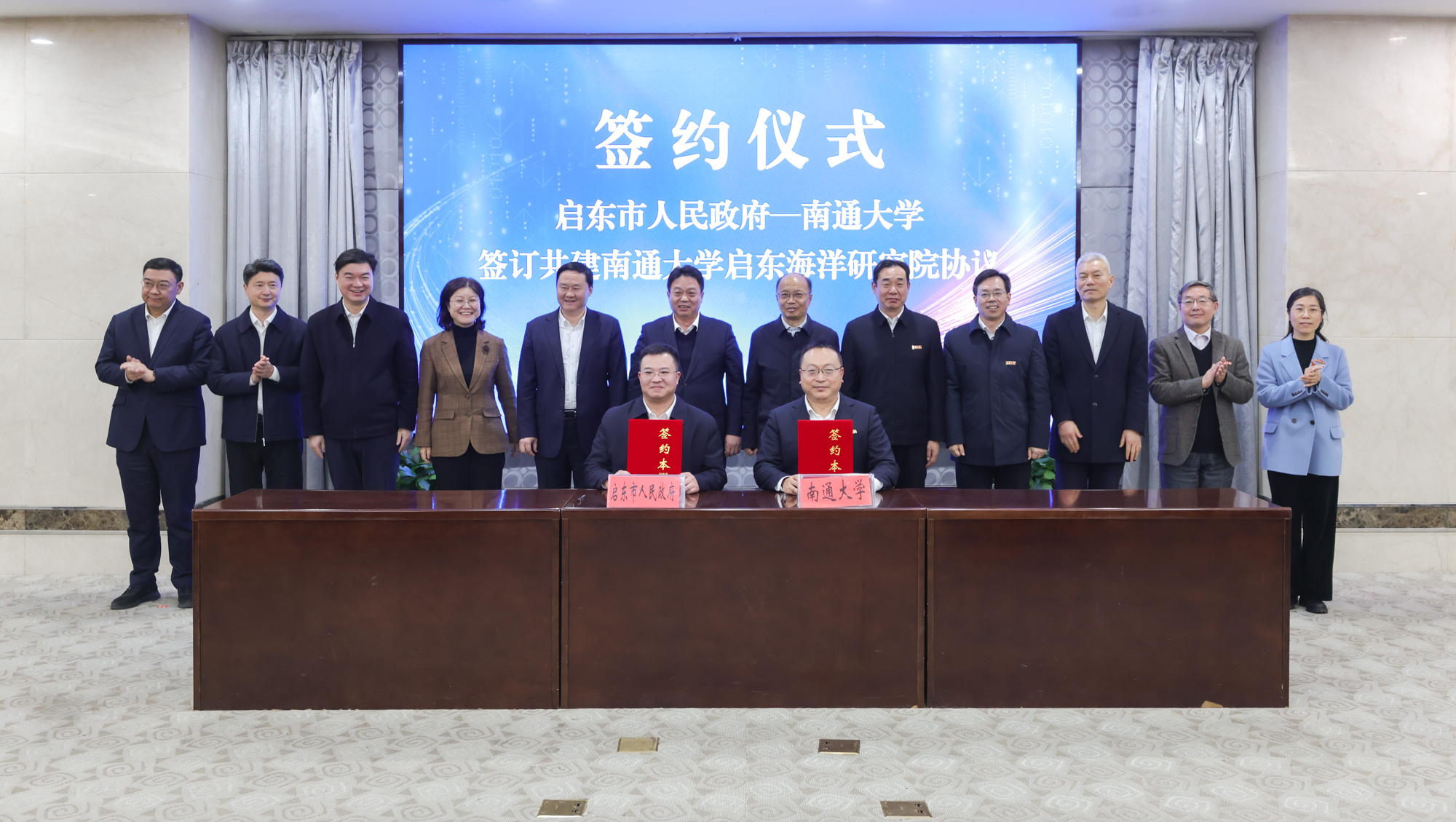 南通市委市政府对研究院正式签约表示祝贺,指出这是“名城名校”融合发展开局之年的丰硕成果,校地双方要以海洋研究院为载体,用好特种医学、机械工程、信息通信工程等通大优势学科以及启东沿江沿海产业特色,携手服务国家战略、推进产创融合、探索改革经验,助力南通“322X”现代海洋产业体系建设,让海洋成为南通科技创新的鲜明特色和弯道超车的标志性领域,为国家科技自立自强注入更多南通元素、通大元素。