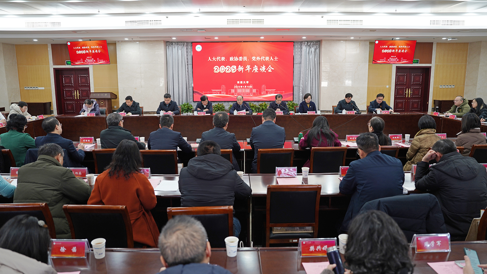 1月10日上午,beat365官网召开人大代表、政协委员和党外代表人士2025新年座谈会。校党委书记、校长杨宇民出席会议并讲话。校党委副书记王卫东,全国政协委员、九三学社省委会副主委施卫东,南通市政协常委、民进南通市委会主委、副校长陈玉娟,校党委常委、宣传部部长陶锋等出席会议。会议由校党委常委、统战部部长朱城主持。