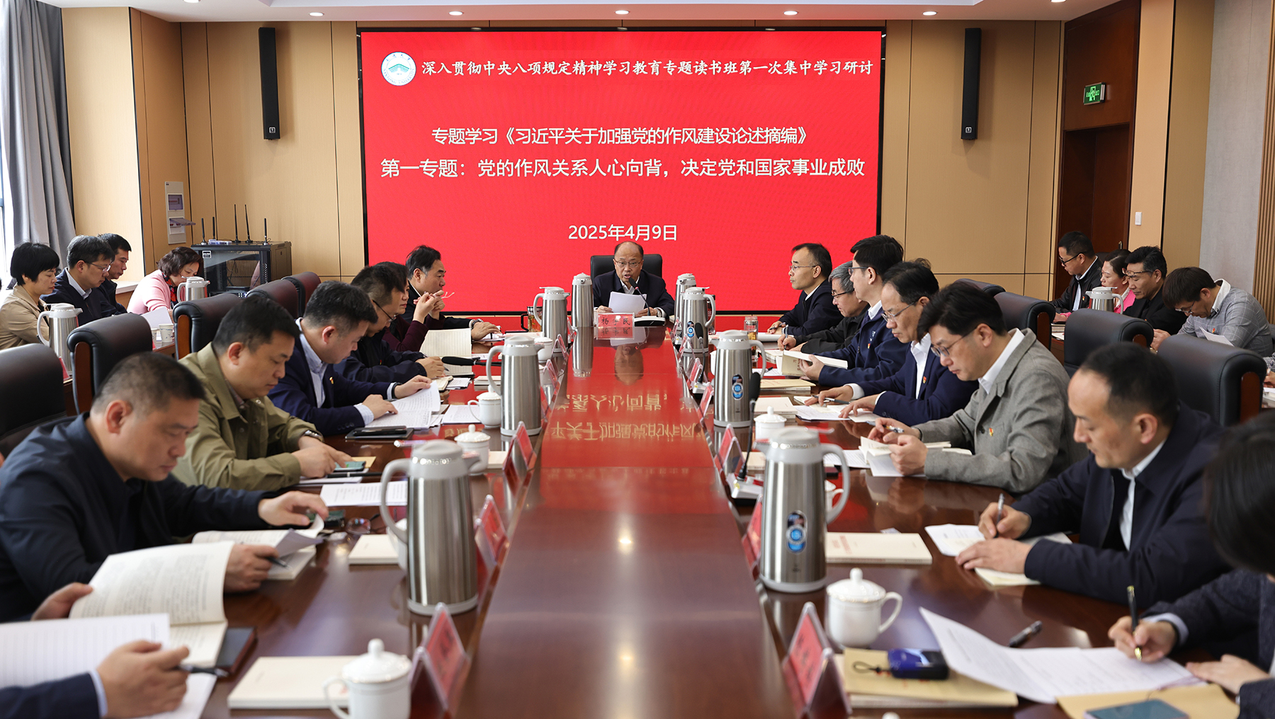 4月9日上午,beat365官网举行深入贯彻中央八项规定精神学习教育专题读书班第一次集中学习,学习研讨《习近平关于加强党的作风建设论述摘编》第一、二、三专题。校党委书记、校长杨宇民主持会议。全体在通校领导、校党委理论学习中心组成员、校纪委委员参加学习。
