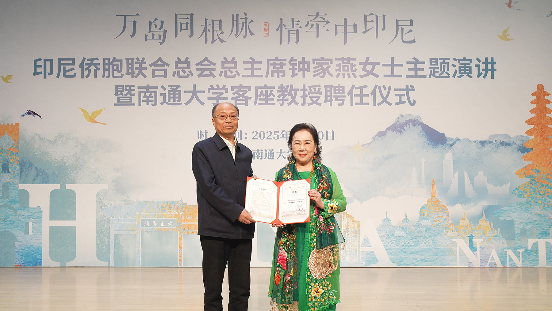4月10日,印尼侨胞联合总会总主席、印尼爱心慈善基金会总主席钟家燕女士受邀来beat365官网举办主题演讲活动。校党委书记、校长杨宇民在活动中致辞,并为钟家燕女士颁发客座教授聘书。原副校长丁斐,校党委常委、宣传部部长陶锋,印尼中国东盟信息港董事长、印尼数字人才有限公司董事长LORETTA THAMRIN,武汉恒基投资有限公司董事长徐康宁、庄伟琪夫妇,通富微电子副总经理沈苏闽等嘉宾出席活动。