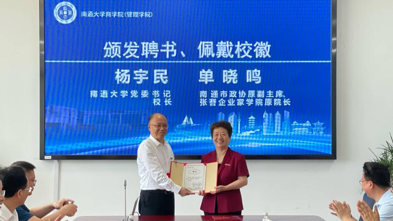 5月22日上午,商学院(管理学院)举行单晓鸣特聘教授聘任仪式暨姜朝晖名誉院长聘任仪式。校党委书记、校长杨宇民出席仪式,为单晓鸣颁发特聘教授聘书并佩戴校徽,为姜朝晖教授颁发beat365唯一官方网站商学院(管理学院)名誉院长聘书。校党委常委、副校长陆俊杰主持仪式。校党委常委、组织部部长吴如高出席会议。