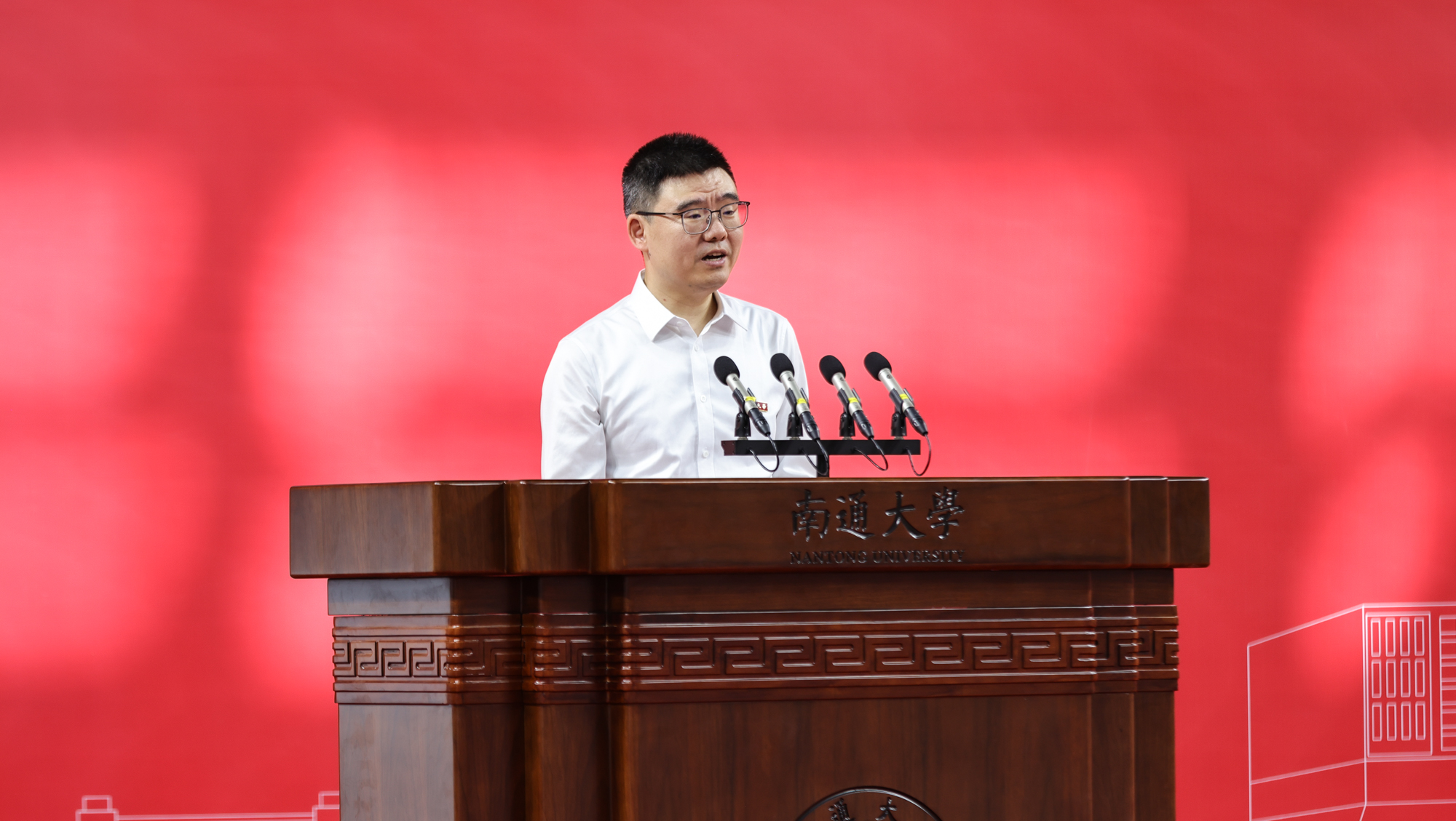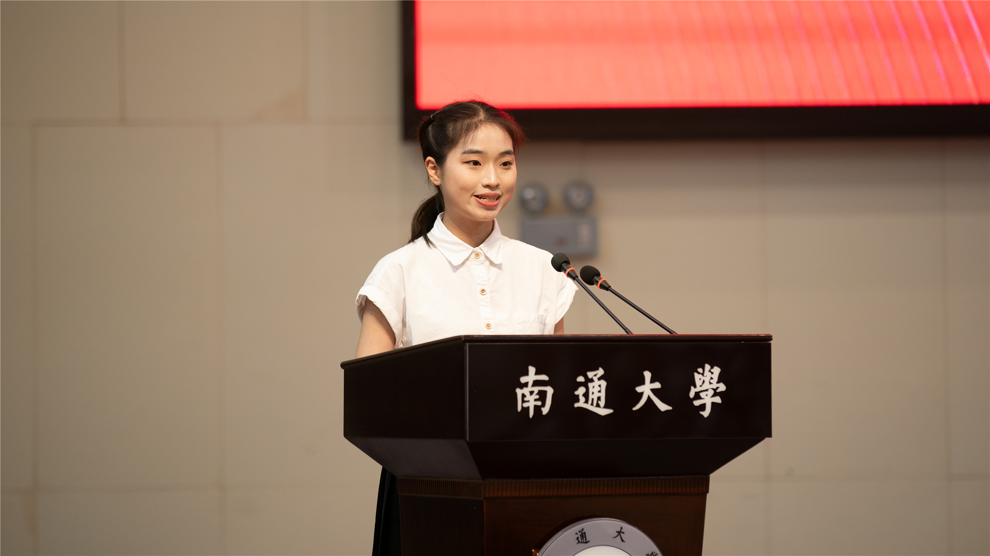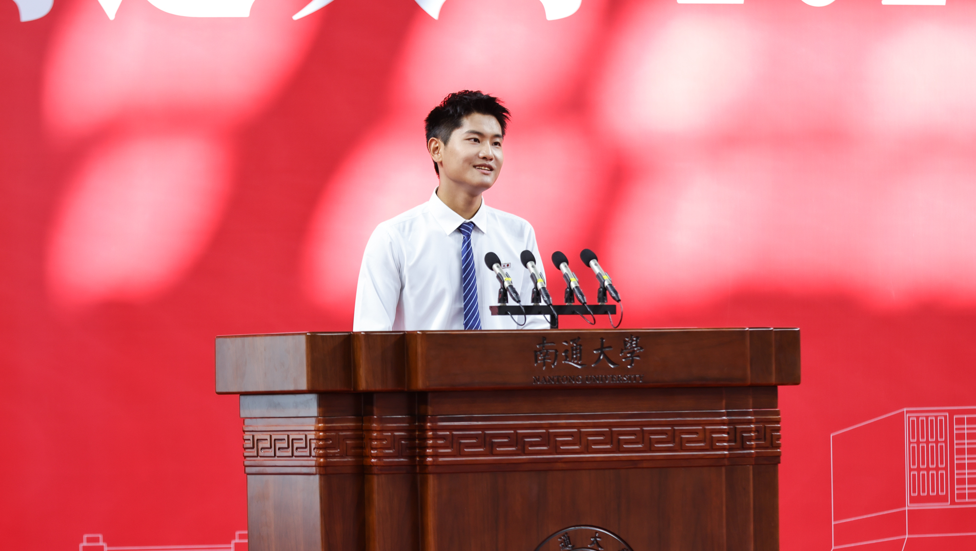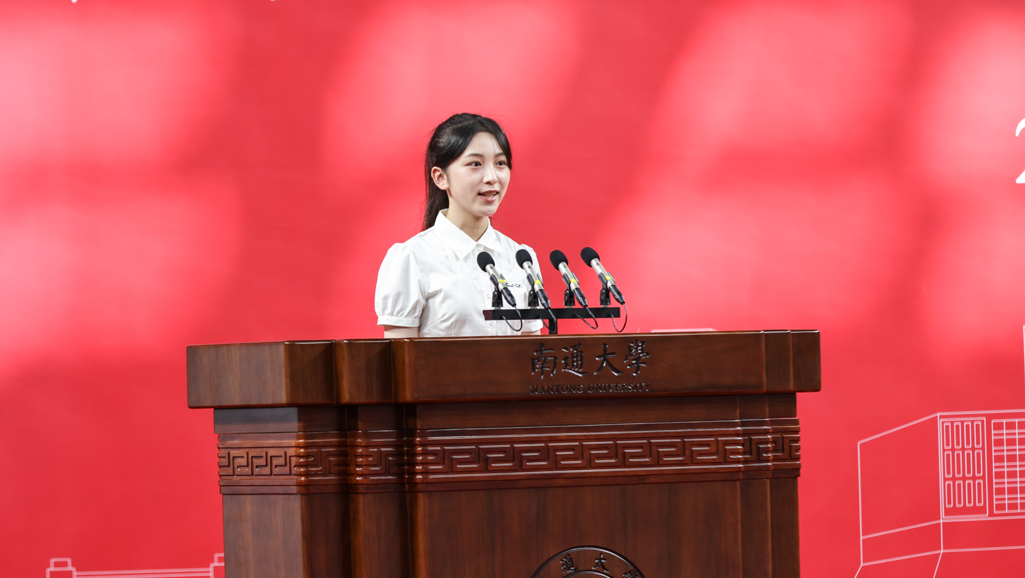 药学院药学251班褚安然、数学与统计学院数学与应用数学(师范)专业251班王雨霏分别作为新生代表发言,表示将笃学求真,筑牢报国根基;修身立德,涵养家国情怀;勇于探索,矢志创新报国,在通大这片青春沃土上,向下扎根,汲取智慧;向上生长,追寻光明,共同用青春的笔触和汗水,写下属于新一代通大人最响亮的注脚。