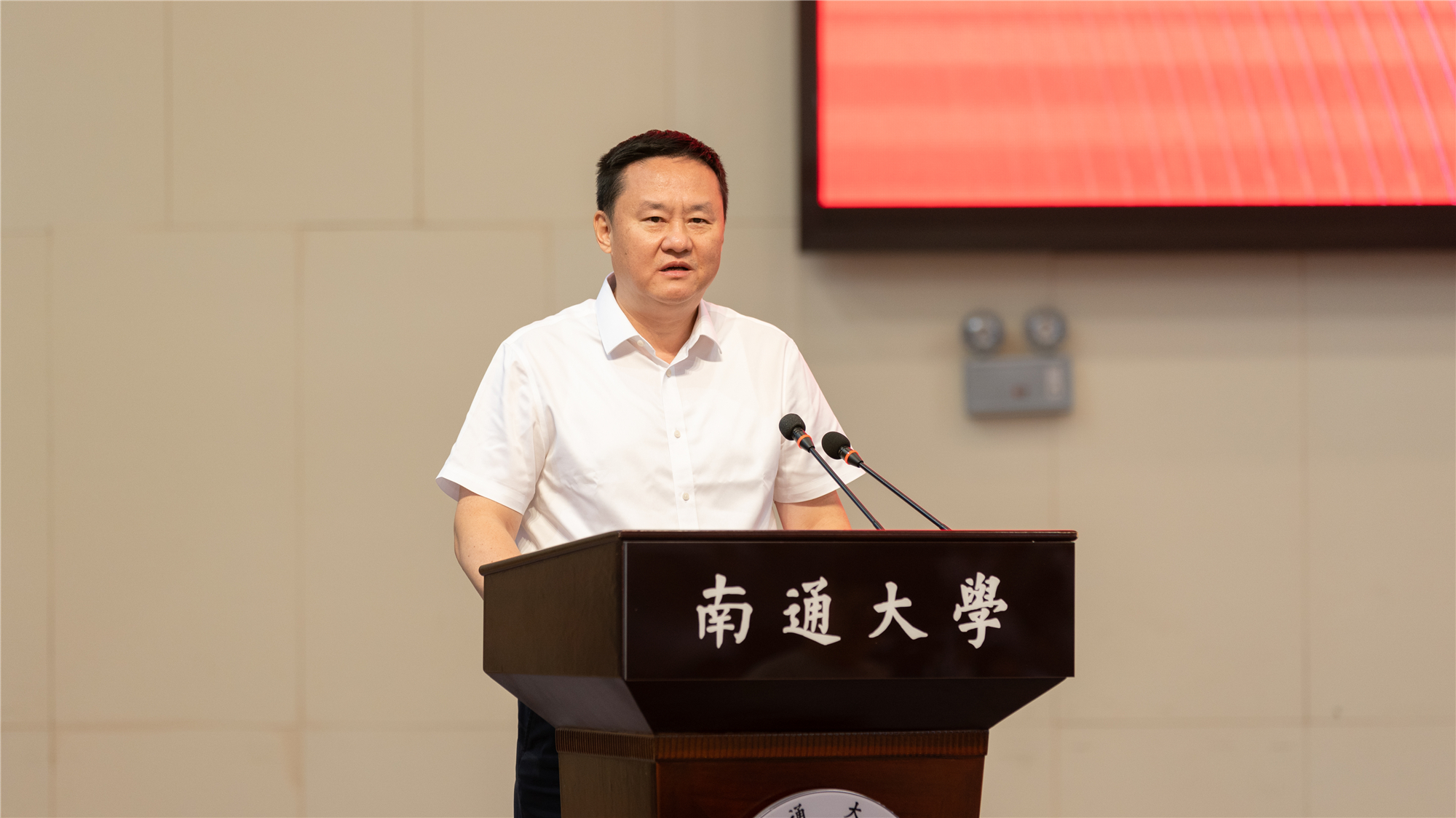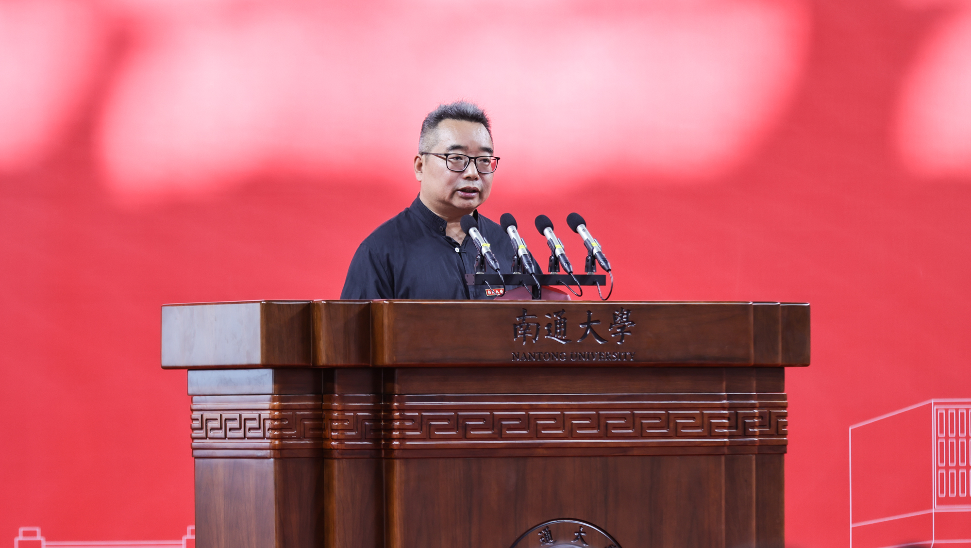 王建浦以《赓续家国情怀 激扬创新活力 以卓越之笔书写人生华章》为题,为全体本科新生上了一堂生动的“开学第一课”。他代表学校对新同学表示热烈欢迎,向辛勤培育的家长、老师致以崇高的敬意,并从建校113年的历史、先校长张謇的办学理念和价值追求,通过详细的事例,生动介绍了通大是一所有着鲜明的爱国底色、有着务实的担当精神、有着深沉的大爱灵魂的大学,始终将自身发展与国家前途、民族命运紧紧联系在一起,致力于服务经济社会发展,注重学生全面发展。他说,站在新的历史起点,通大迎来了最好的发展时期,全体通大人正以追求卓越的奋进姿态加快建设特色鲜明的国内一流大学。他期待同学们在通大这片承载着荣光的热土,广泛地阅读、独立地思考、自由地探索、大胆地实践,通过不懈努力创造属于自己的精彩人生,续写通大更加美好的时代诗篇。