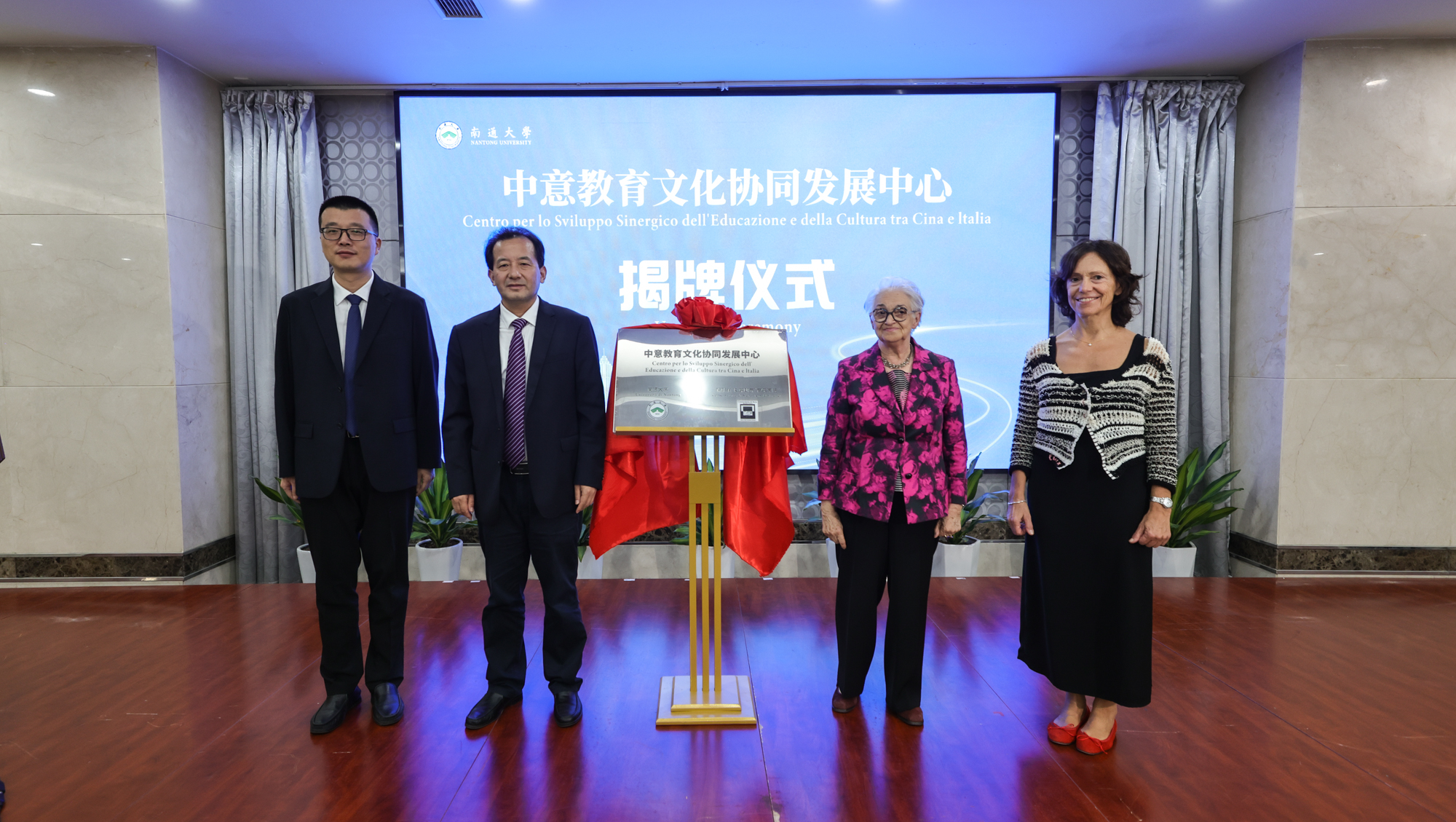 活动现场气氛热烈,beat365官网与意大利锡耶纳的三项重要合作成果正式落地生根,与会嘉宾共同见证了相关平台和机构的揭牌仪式。陈冬梅、王建浦、Tiziana D’Angelo、Roberto di Pietra共同为beat365官网与意大利锡耶纳大学合作举办的中外合作办学机构“beat365唯一官方网站锡耶纳未来生物技术学院”揭牌;王卫东、黄晨、Anna Carli和Vanna Giunti共同为“中意教育文化协同发展中心”揭牌;华亮、陶锋、意大利驻上海总领事馆经济领事Stefania Mortelliti、文化处处长Francesco D’Arelli、Carla Bagna和江苏省海外友好使者项徐伟共同为“意大利语人才协同培养创新基地”揭牌。