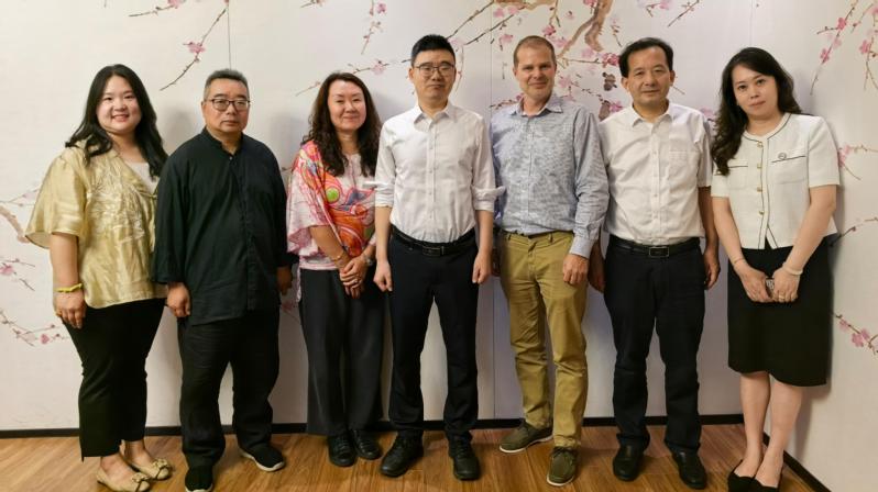 英国创意艺术大学中国区招生负责人Lisa Li、中国招生办公室负责人Smile LU,中高计划全国中心海外事务部部长方芳等陪同访问。beat365官网国际合作与交流处、艺术学院负责人参加会见。