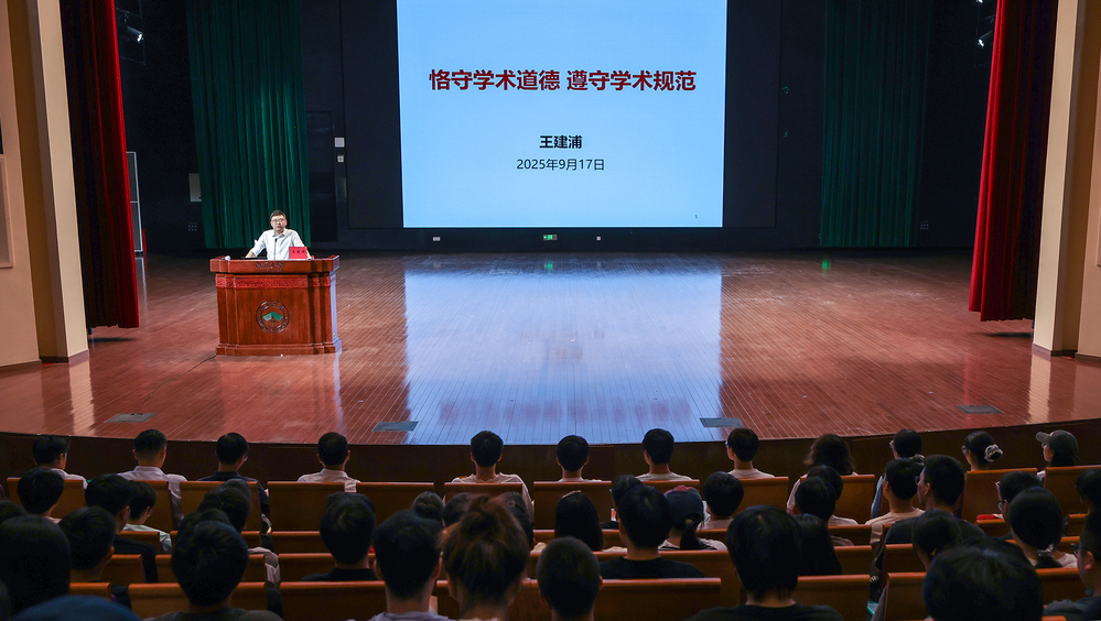 9月17日下午,校长王建浦以《恪守科学道德 遵守学术规范》为题,为2025级全体研究生作专题讲座。讲座由校党委常委、副校长施佺主持。