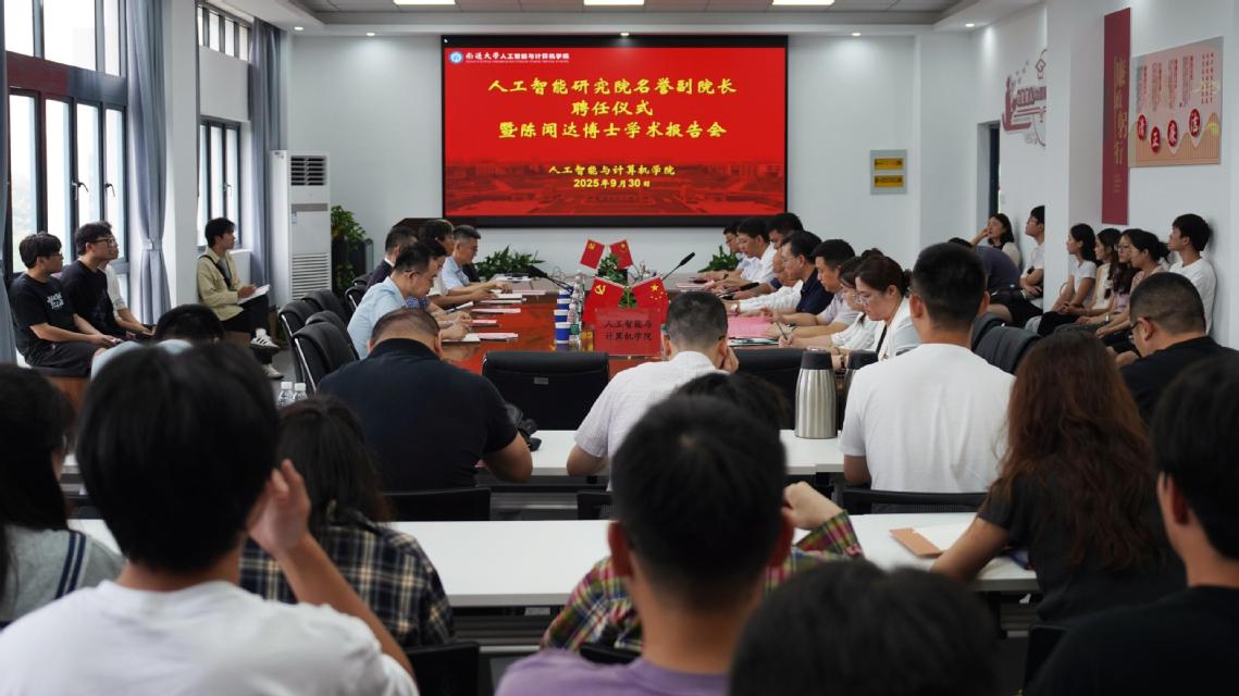 会上,人工智能与计算机学院院长丁卫平就人工智能研究院建设情况进行汇报。会后,与会领导参观了人工智能与计算机学院院士工作站、科大讯飞人工智能实验室,陈闻达博士为人工智能与计算机学院师生作了题为《智能的演进:从感知语言到融合认知智能——我的AI研究之旅》专题学术报告。