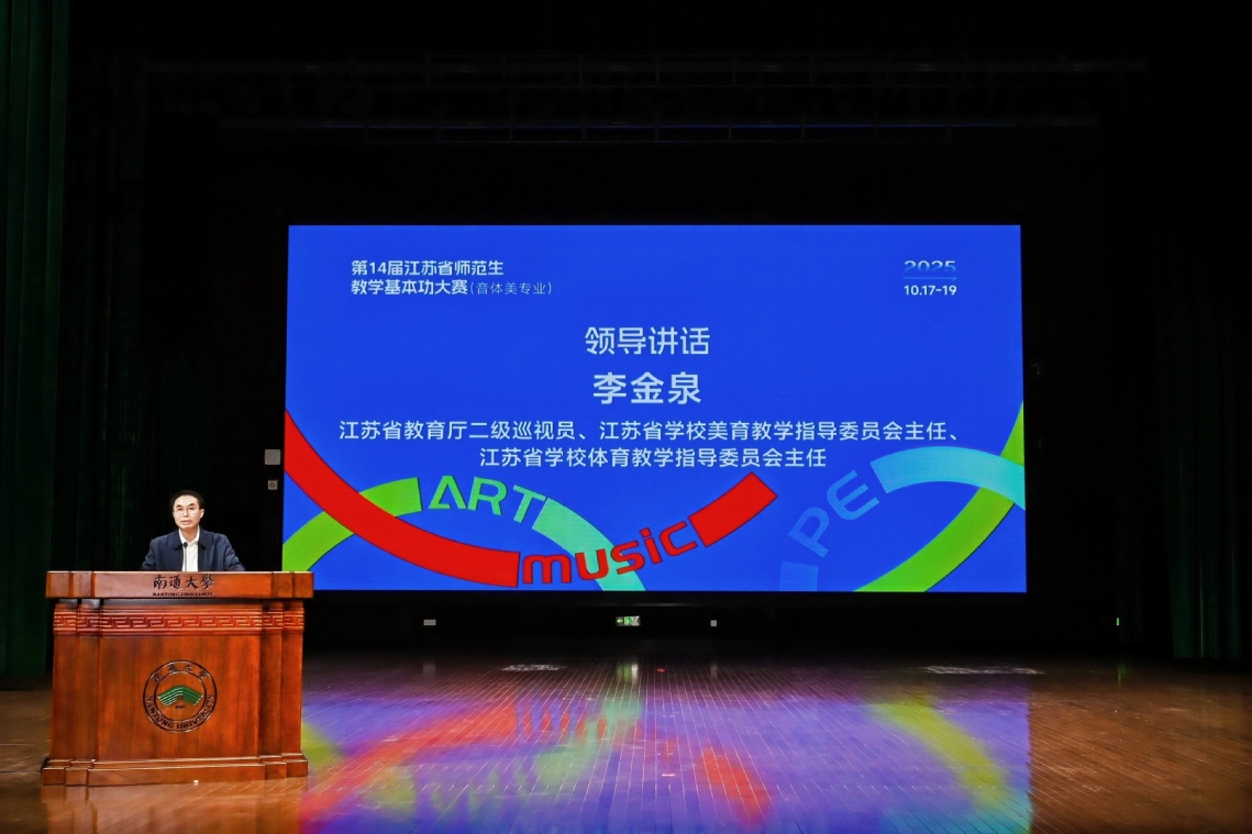 10月17—19日,第十四届江苏省师范生教学基本功大赛(音体美专业)在beat365官网举办。江苏省教育厅二级巡视员、江苏省学校美育教学指导委员会主任、江苏省学校体育教学指导委员会主任李金泉在开幕式上讲话。校党委常委、副校长徐骏代表学校致辞。