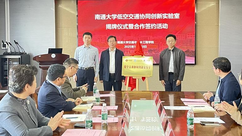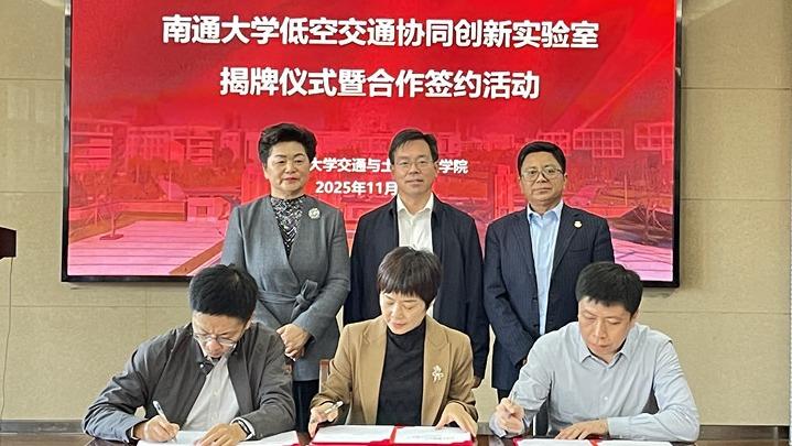 揭牌仪式上,施佺、杜忠岩、吴学军共同为“低空交通协同创新实验室”揭牌。施佺为葛玉琴颁发实验室顾问聘书。交通与土木工程学院与南通市综合交通运输学会、南通市无人机行业协会共同签署三方合作协议,与中国联通智能城市研究院、北京智网易联科技有限公司签署共建“低空交通协同创新实验室”战略合作协议。活动现场还进行了低空管控平台及飞行展示,校企双方就促进产教深度合作进行交流。