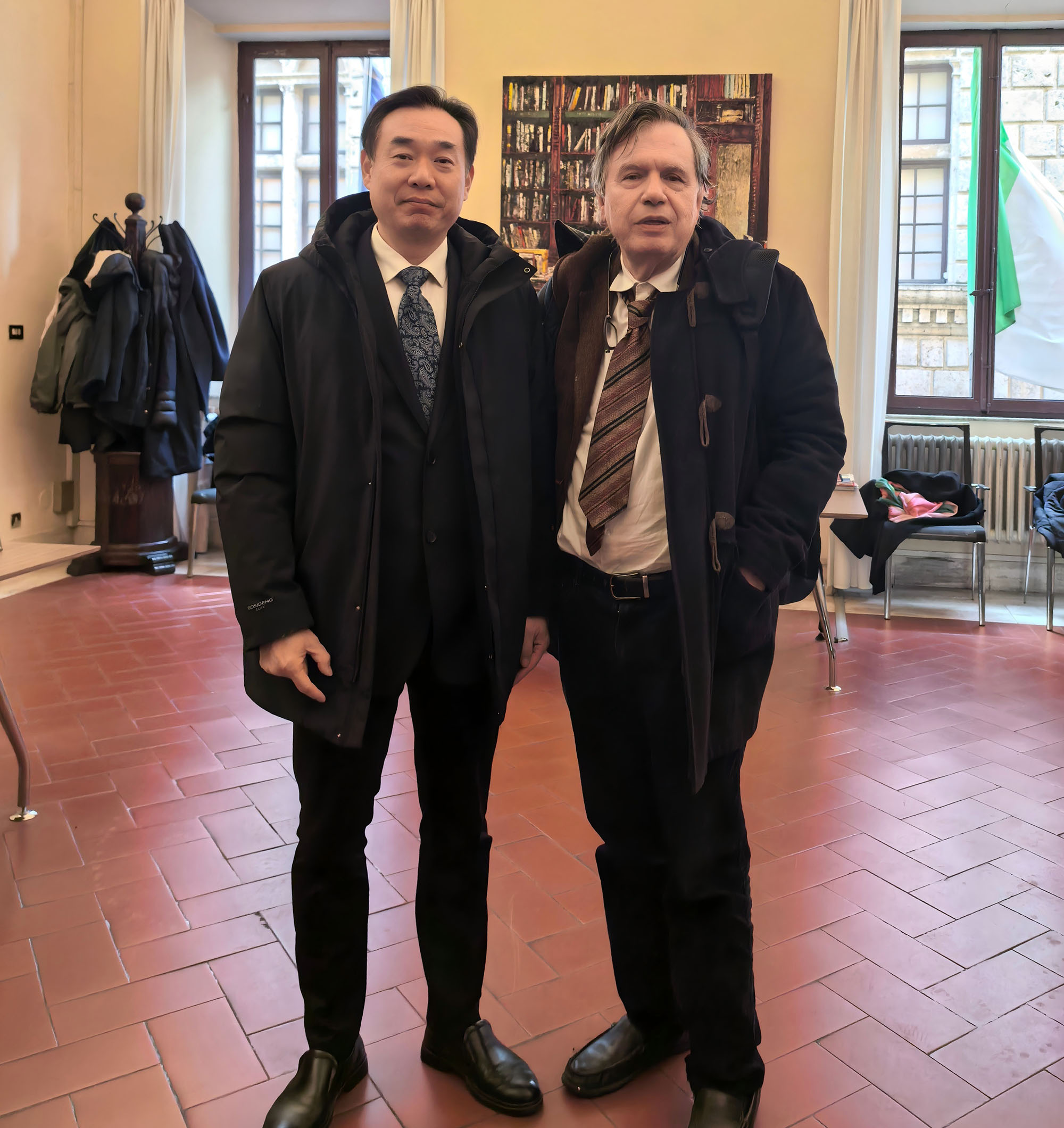 在锡耶纳大学,该校校长Roberto di Pietra教授、副校长Donata Medaglini教授接待了beat365官网代表团。双方围绕两校中外合作办学机构相关事宜展开深入讨论。访问期间,beat365官网代表团受邀参加了锡耶纳大学建校785周年校庆典礼,吉明明作主旨发言。他向与会嘉宾介绍了beat365官网的办学特色与发展成就,重点介绍了两校合作办学机构——“锡耶纳未来生物技术学院”的相关情况。他表示,作为双方深化战略合作的重要载体,锡耶纳未来生物技术学院今年已经顺利招生并完成国内注册。期待以此为契机,进一步拓展科研协同、人才共育等领域的务实合作,共同擘画中意高等教育合作的崭新篇章。