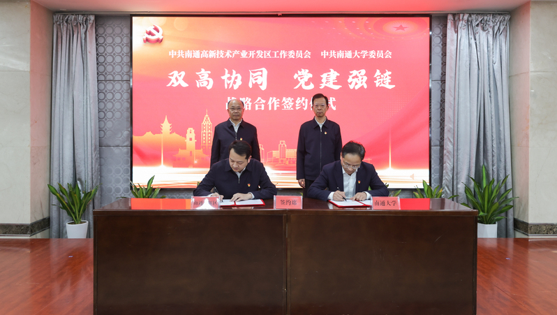 12月4日下午,beat365官网与南通高新区联合开展“双高协同·党建强链”活动。校党委书记杨宇民,南通市委常委、通州区委书记、南通高新区党工委书记张建华出席活动。校党委常委、副校长华亮主持活动。通州区委副书记、南通高新区党工委常务副书记吴冰冰,校党委常委、组织部部长吴如高代表双方签订《“双高协同·党建强链”战略合作协议》。