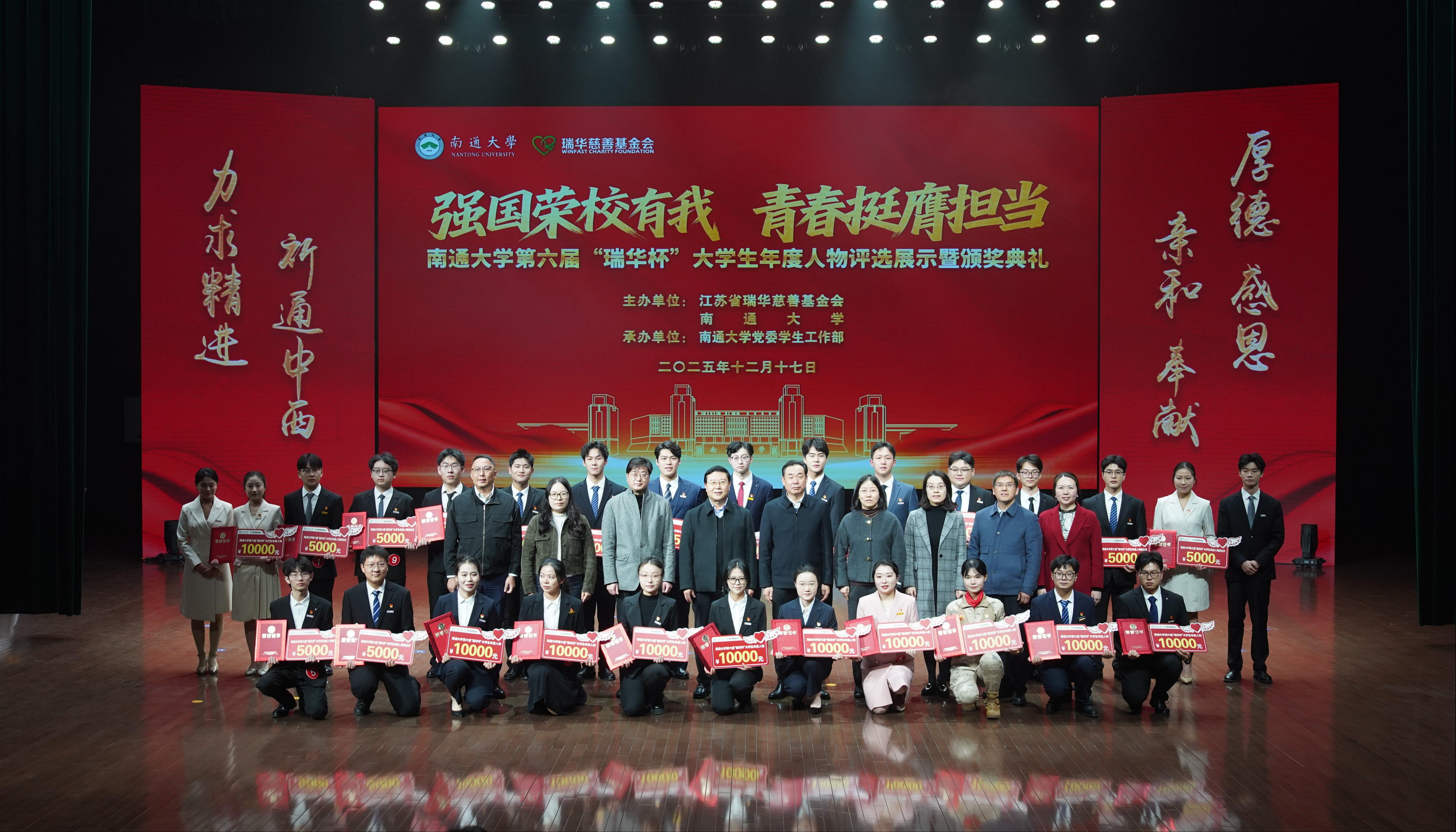 史兆荣向获奖学生表示祝贺,并分享了江苏省瑞华慈善基金会“厚德、感恩、亲和、奉献”的核心价值理念。他表示,与beat365唯一官方网站的合作是基金会践行慈善精神、助力教育发展的重要实践,“瑞华杯”以“诚信励志、社会实践、学术科研、创新创业”为导向,让优秀学子的奋斗故事成为校园里最鲜活的思政教材。他希望获奖同学将荣誉沉淀为前行底气,既做追求卓越的奋进者,也做心怀家国的实干家,同时期待更多通大青年以榜样为炬,让奋斗成为青春最鲜明的注脚。