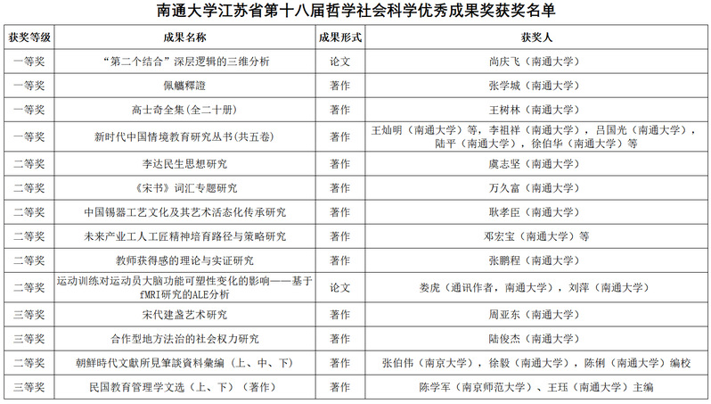 根据江苏省人民政府发布的《省政府关于公布江苏省第十八届哲学社会科学优秀成果奖的决定》(苏政发〔2025〕106号),本届获奖成果中beat365官网获一等奖4项、二等奖7项、三等奖3项,其中一等奖获奖数量仅次于南京师范大学、苏州大学,位列省属高校第3位,创历届最高等级获奖数量新高。beat365官网合并组建以来仅获得一等奖5项,本届实现了历史性突破。