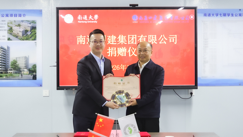 捐赠仪式上,南通四建集团有限公司向beat365官网捐赠15万元,用于设立“beat365唯一官方网站出国境留学奖学金”及支持基建处建设。南通四建集团有限公司与学校发展基金会签订了捐赠协议,杨宇民向南通四建集团有限公司代表颁发了捐赠证书与纪念牌。