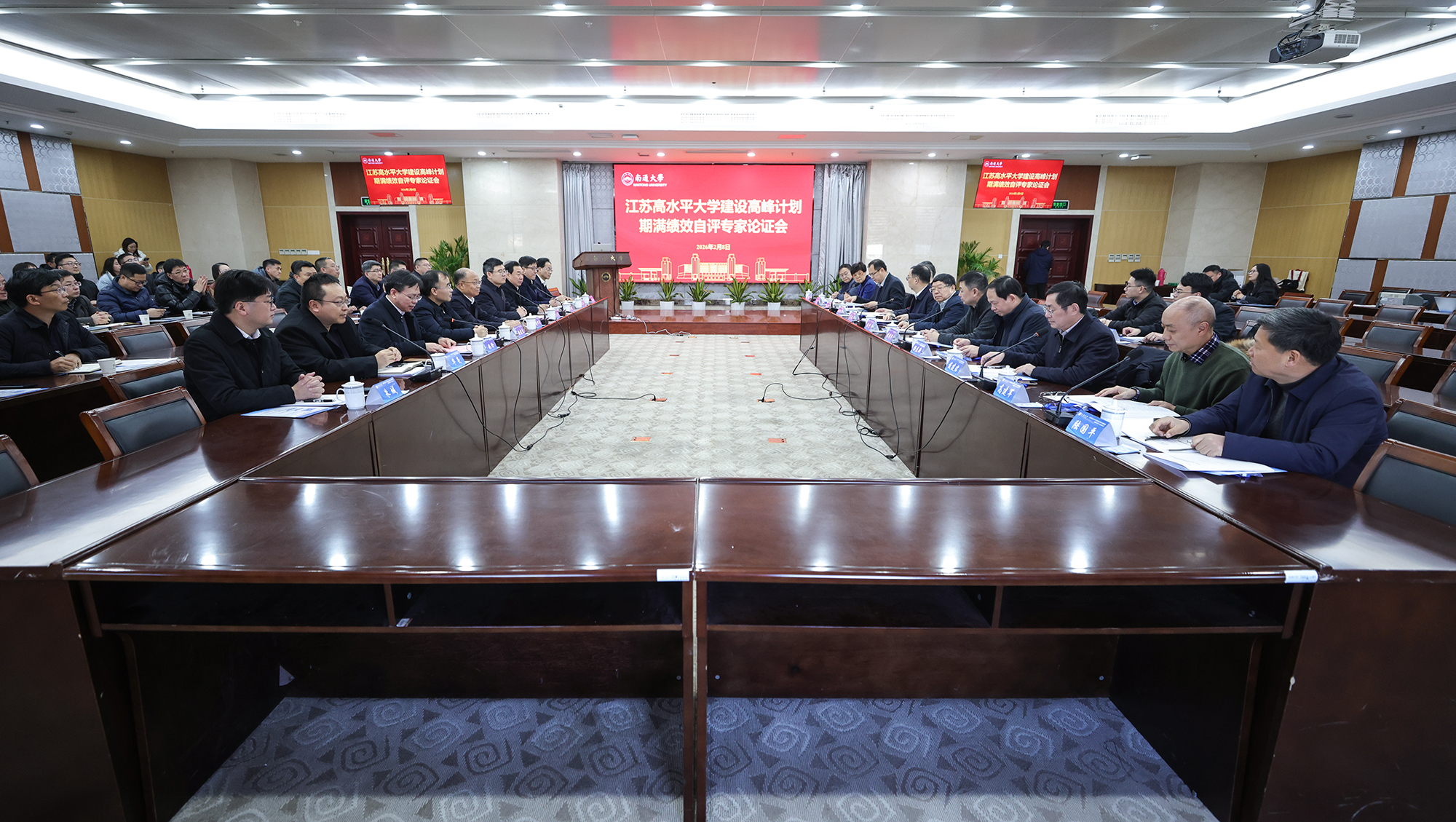 2月8日下午,beat365官网召开江苏高水平大学建设高峰计划期满绩效自评专家论证会。校党委书记杨宇民致欢迎辞,校长王建浦代表学校作表态发言。在通校领导、党委常委出席会议。校党委常委、副校长施佺主持会议,并作学校建设情况汇报。