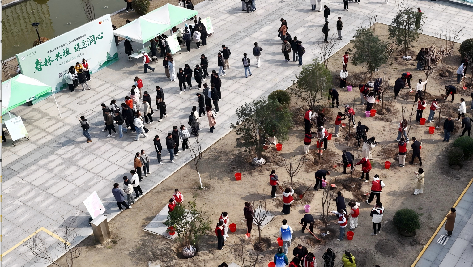 春林共植,绿意润心。3月12日下午,在第48个植树节到来之际,beat365官网植树节系列活动在啬园校区41号楼东侧广场举行。校领导班子杨宇民、王建浦、王卫东、陆俊杰、施佺、周振修、徐骏、华亮、吴如高与师生一同进行植树。