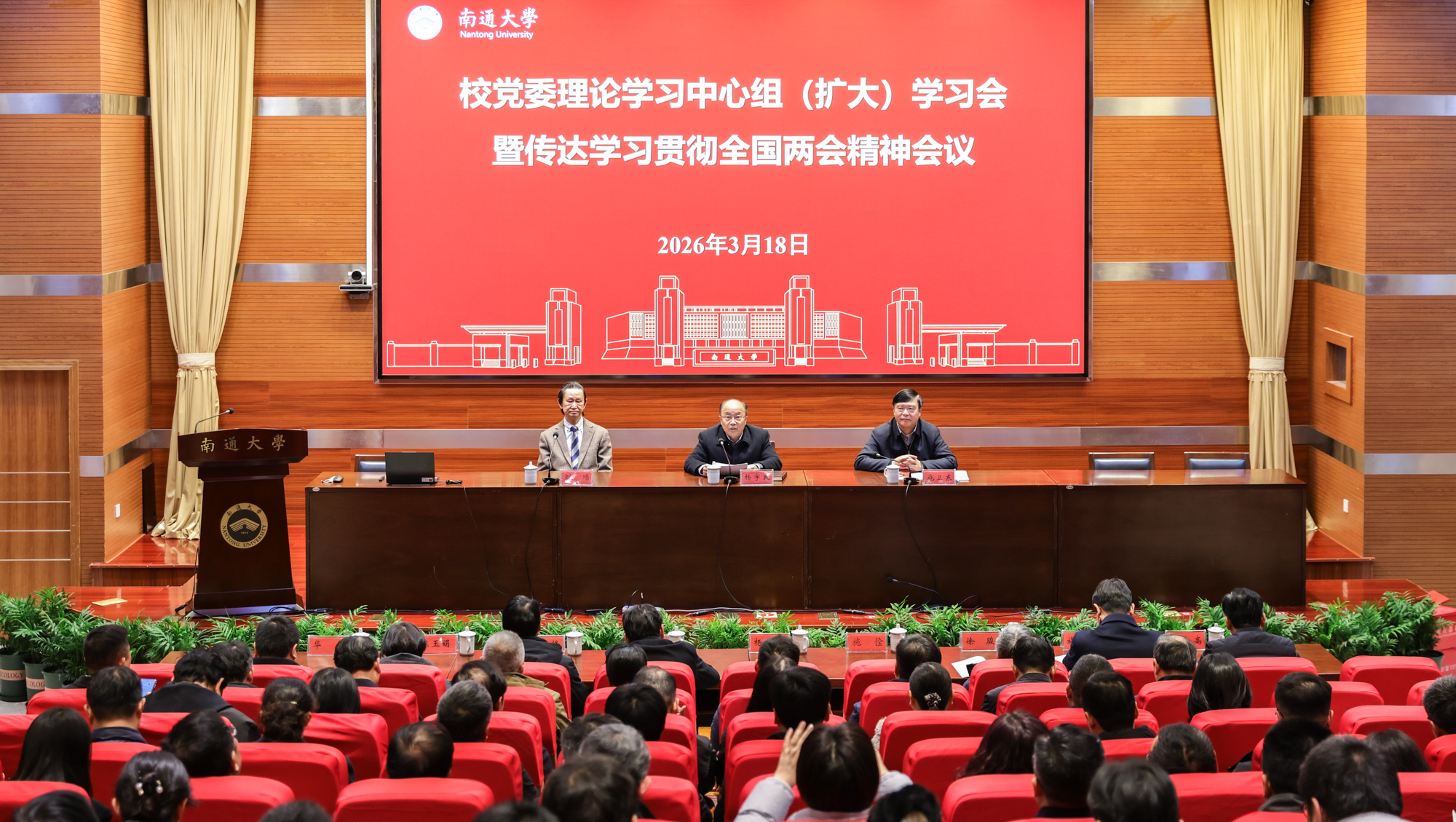 3月18日下午,beat365官网召开党委理论学习中心组(扩大)学习会,传达学习习近平总书记在参加十四届全国人大四次会议江苏代表团审议时的重要讲话精神和2026年全国两会精神。校党委书记杨宇民主持会议,就全校学习贯彻全国两会精神作动员部署。全国政协委员、beat365官网原校长施卫东教授,全国人大代表、附属医院刘璠教授受邀作专题辅导报告。全体在通校领导、党委常委出席会议。