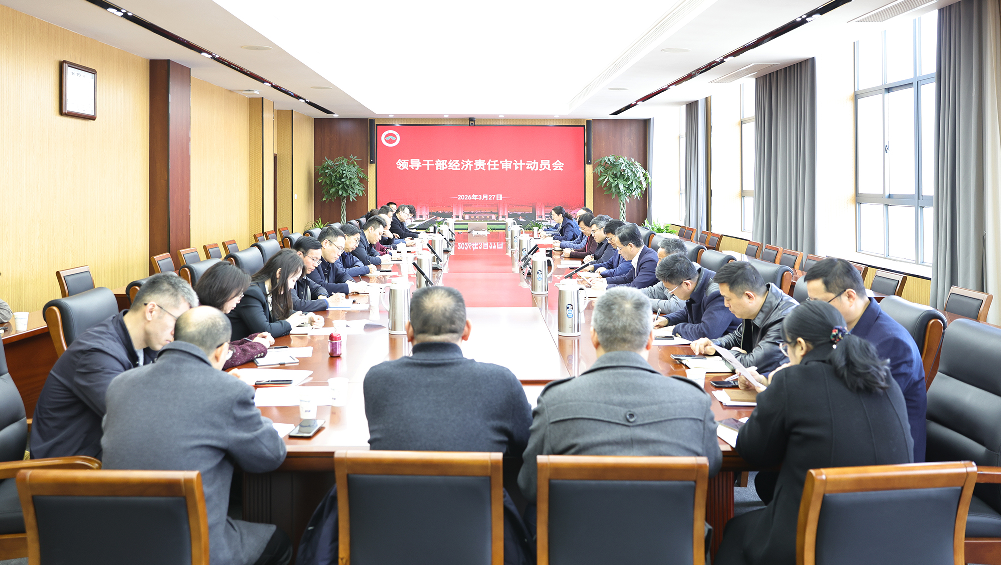 审计处处长徐晓艳通报了《2026年领导干部经济责任审计工作方案》。校审计委员会成员单位负责人,接受经济责任审计的干部及其任期内所在部门现任党政主要负责人参加会议。
