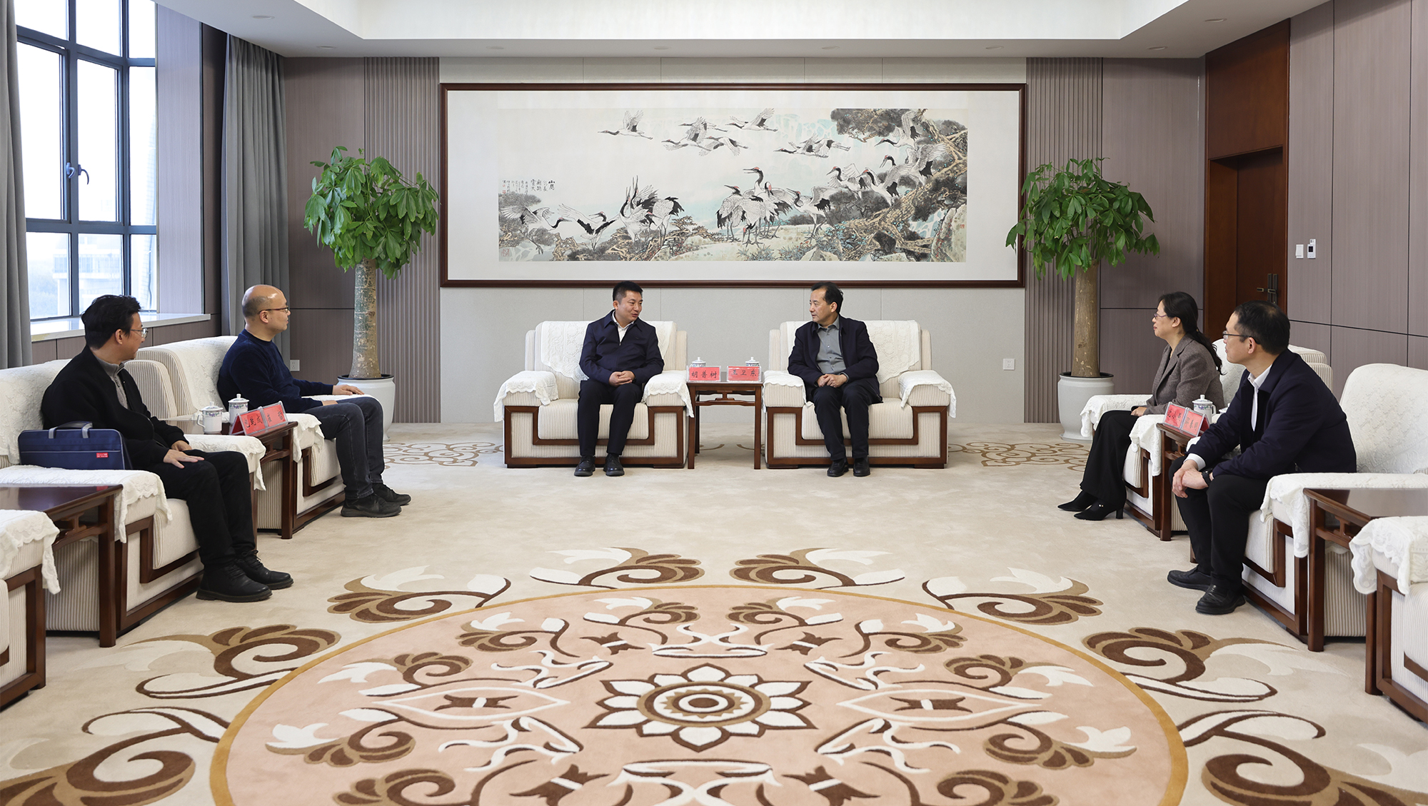 4月1日下午,新疆天山职业技术大学(克州校区)校长胡普树来校访问,校党委副书记王卫东会见了来宾。