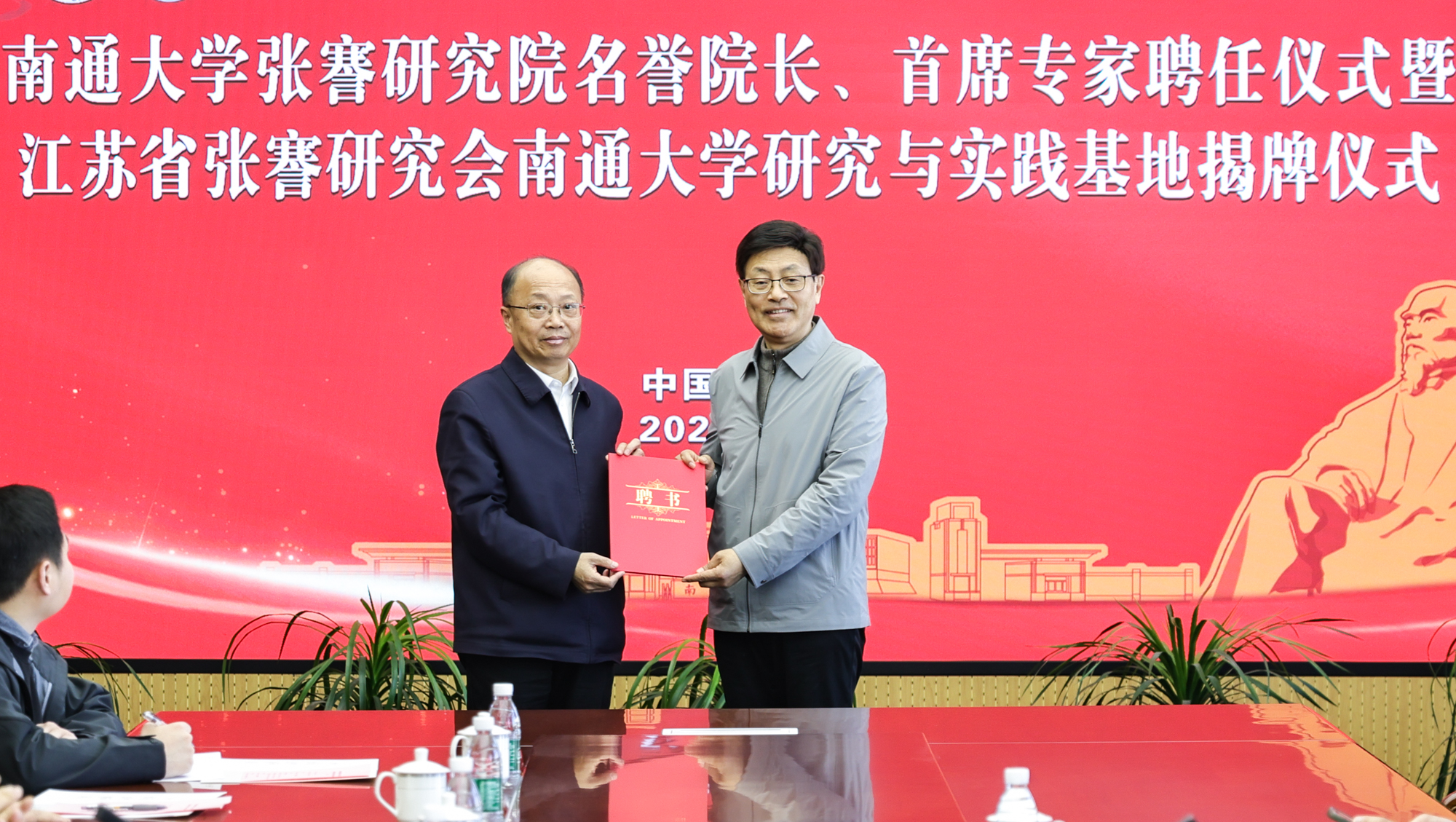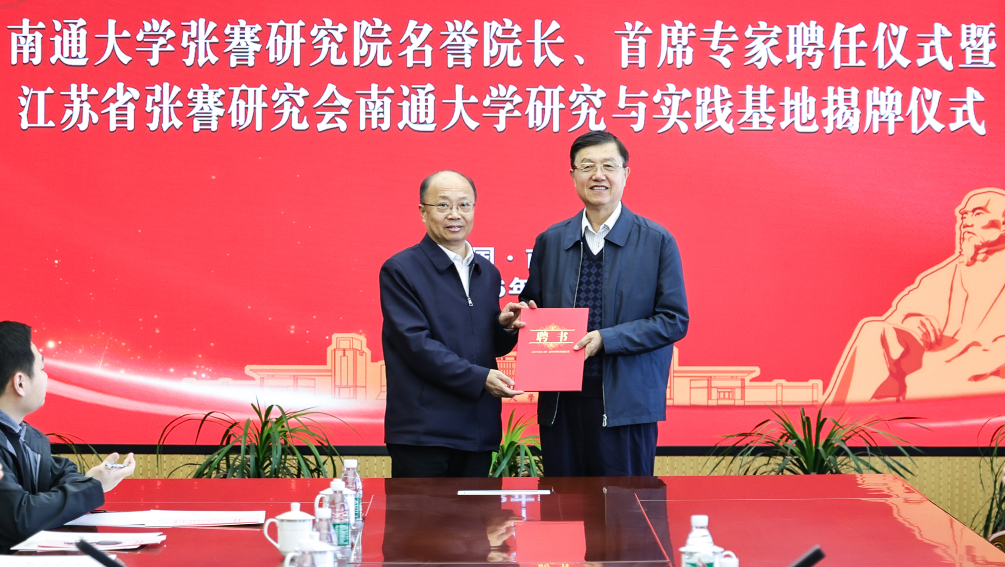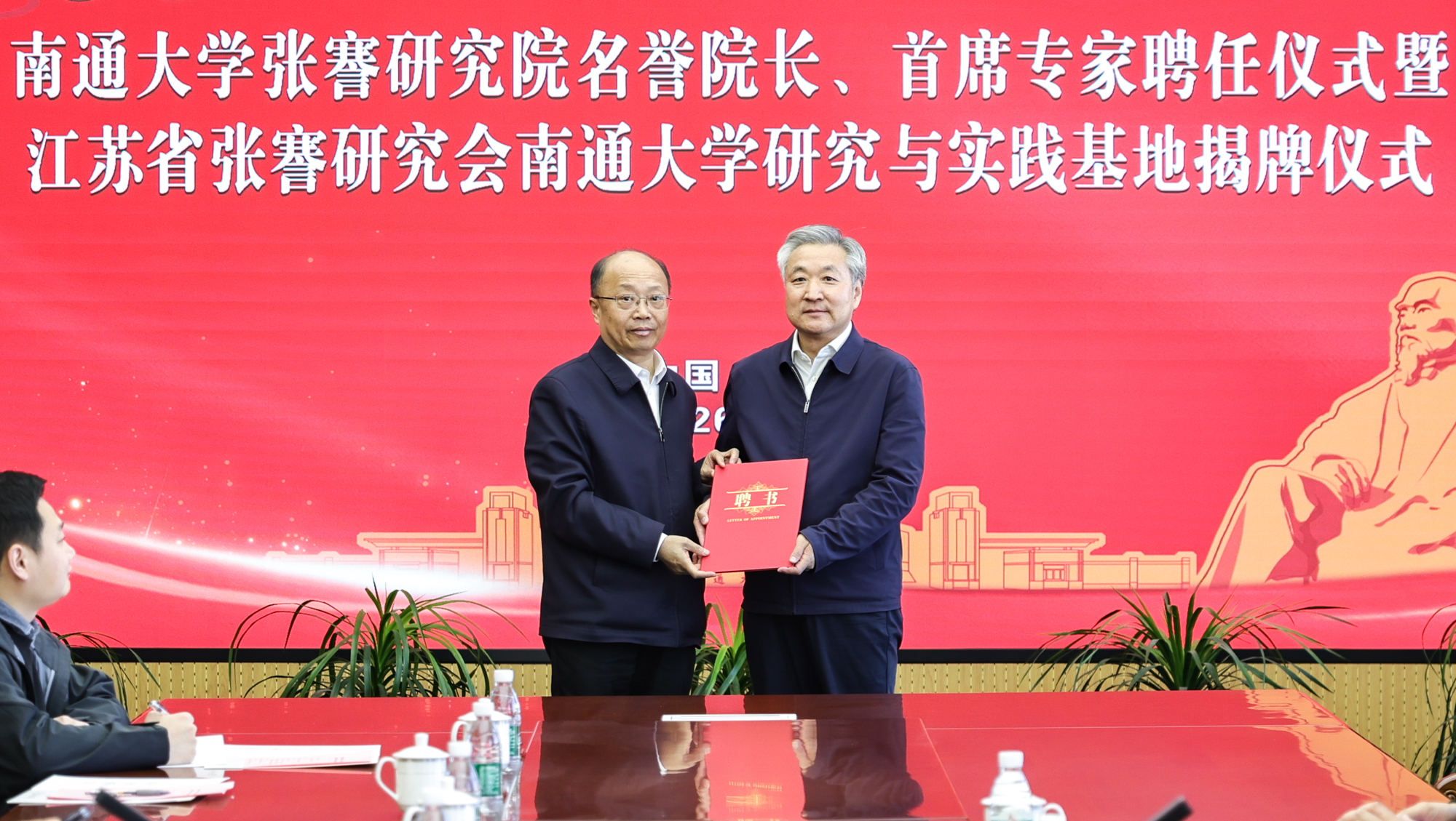 4月7日上午,beat365官网举办张謇研究院名誉院长、首席专家聘任仪式暨江苏省张謇研究会beat365唯一官方网站研究与实践基地揭牌仪式。江苏省政协原副主席、党组副书记罗一民出席仪式,并做客“精进讲坛”社科名家报告会。校党委书记杨宇民为罗一民颁发张謇研究院名誉院长、首席专家聘书,为江苏省张謇研究会会长、南京艺术学院原党委书记管向群和中国慈善联合会副会长、南通市慈善联合总会会长黄巍东颁发张謇研究院高级顾问聘书。校党委常委、纪委书记、派驻监察专员周振修与管向群共同为“江苏省张謇研究会beat365唯一官方网站研究与实践基地”揭牌。校党委常委、副校长陆俊杰主持活动。