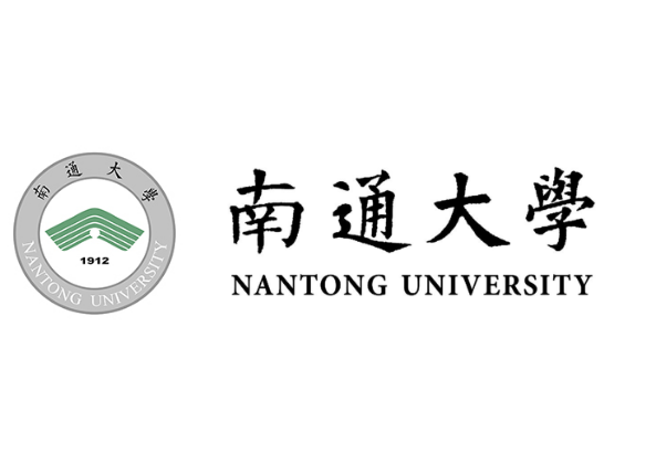 自下而上,由短到长对称排列递次舒展的五根曲线,恰似五山叠翠。又如传统水纹,暗喻南通濒江临海的地理位置,也体现学校多学科的综合性。中间的圆,既为磬之孔又为东升之日。
