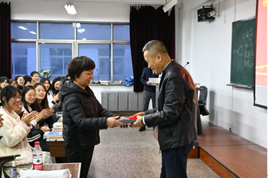 药物化学教研室主任刘亚婧教授代表基层教研室向孙教授献礼,感谢孙教授的辛勤付出,并祝孙教授退休生活愉快。