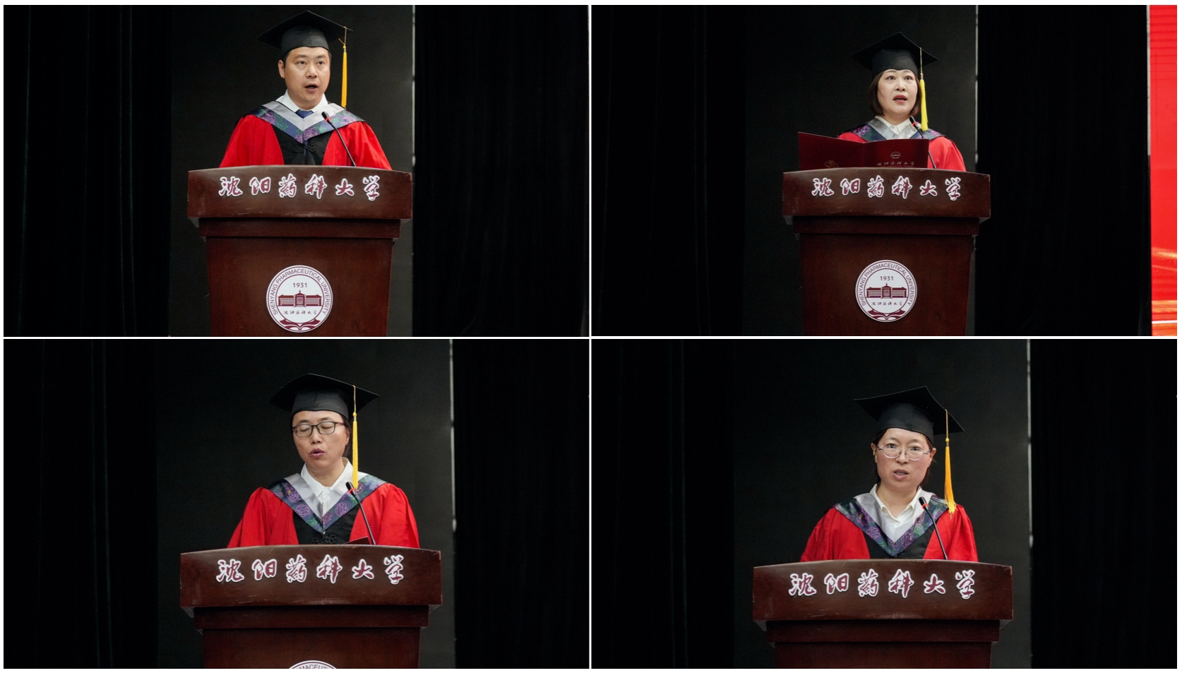 BV伟德官方网站院长刘洋教授宣读2024届博士学位授予名单;药物化学学科主席翟鑫教授、制药工程学科主席刘洋教授、化学学科主席王绍宁教授、化学工程与技术学科主席赵燕芳教授分别宣读各学科2024届硕士学位授予名单;制药工程专业负责人刘丹教授、药物化学专业负责人郭春教授、环境科学专业负责人张聪璐副教授、应用化学专业负责人胡春教授分别宣读2024届学士学位授予名单。