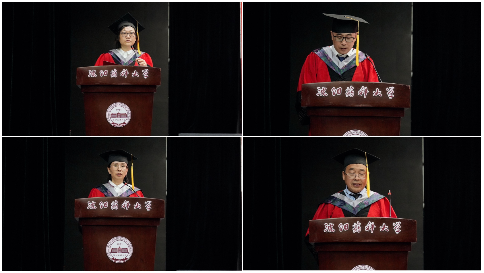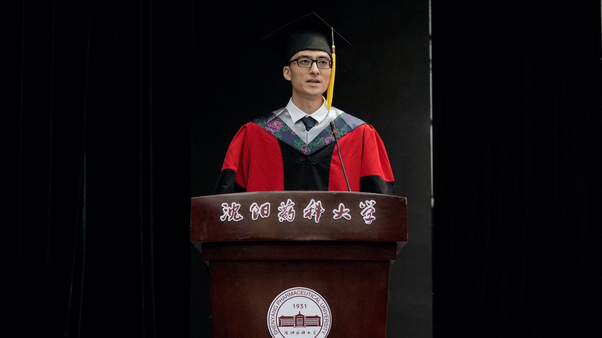 54期校友、辽宁海思科制药有限公司总经理梁勇作为校友代表发言。他回顾了在沈药度过的美好求学时光,分享了工作后的经历和感悟,毕业季是人生的一个重要里程碑,也是开始新旅程的起点,走入社会后,同学们将面临和校园中完全不同的生活。他鼓励毕业生们勇于拼搏,敢于尝试,在未来的道路上勇往直前,不断追求梦想,实现自己的价值。