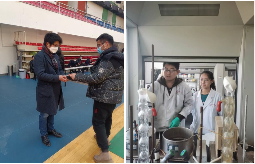 有一种奉献,叫做坚守;有一种行动,叫做忠诚。作为坚守南校区的值班教师,陈建超积极参与学校防疫工作,主动担任学校日常核酸检测的志愿者。作为有机教研室一员,陈建超在疫情期间承担了两个班级的有机化学理论课线上授课和三个班级的实验课线上授课工作。作为青年教师,他也不放松科研任务的推进,在其长期从事的抗结核药物开发领域,认真撰写并提交了国家自然科学基金青年基金的项目申请书。
