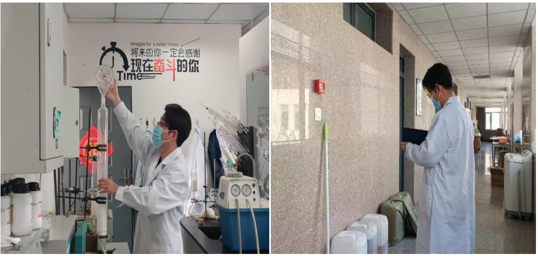 自3月15日学校实行封闭管理,吴成军就坚定的留在了南校区疫情防控第一线,逆行而上留守校园,不忘初心冲锋在前。学院实验室易燃易爆化学品较多,研究生在没有老师现场指导的情况下做实验,存在一定的风险,吴成军承担起守护制药楼实验室安全的重任。他每天不定时在楼内进行安全检查,将发现的问题及时通知相关实验室负责人进行整改,并在每天4点前,对各实验室的安全情况进行统计,将统计结果按时上报学校。保障学院实验室安全运转,确保每一名同学平安科研,对他来说就是最幸福的事。