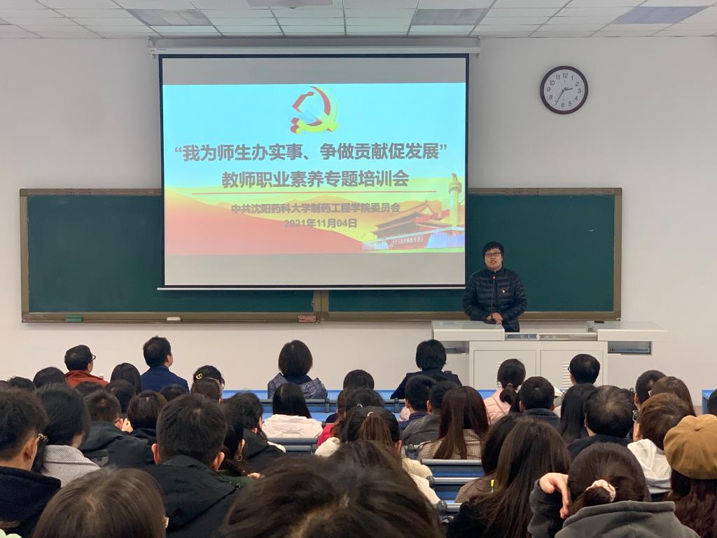 为提升BV伟德官方网站教师队伍的综合职业素养,提高教师教书育人水平,让学院师生切实感受到开展党史学习教育以来教师队伍的新变化,11月4日,BV伟德官方网站党委在南校区播馨楼104教室召开“我为师生办实事、争做贡献促发展”提升教师职业素养专题培训会,邀请辽宁省教学名师、药物化学教研室郭春教授作专题报告。院领导班子、中青年教师及研究生助教参加了会议,报告会由院党委书记李哲主持。