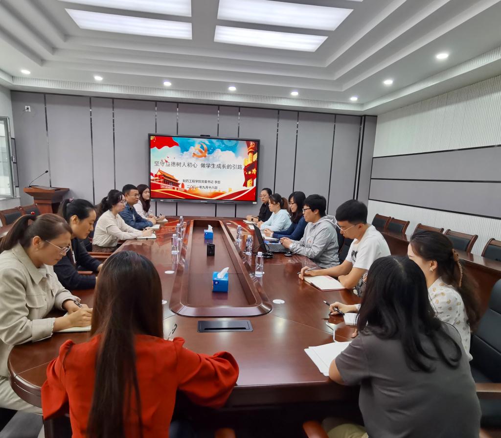 为深入学习贯彻习近平总书记关于干部队伍建设的重要论述,切实把党史学习教育成果转化成为师生办实事的实践行动,提升学院学生工作队伍的育人水平和业务能力,促进青年教师成长成才,BV伟德官方网站党委书记李哲于9月18日在制药楼227会议室,围绕“坚守立德树人初心做学生成长的引路人”主题,为学生支部的教师党员和积极分子上了一堂生动的专题党课。学院党委副书记刘阳、全体辅导员及教学秘书参加了会议。
